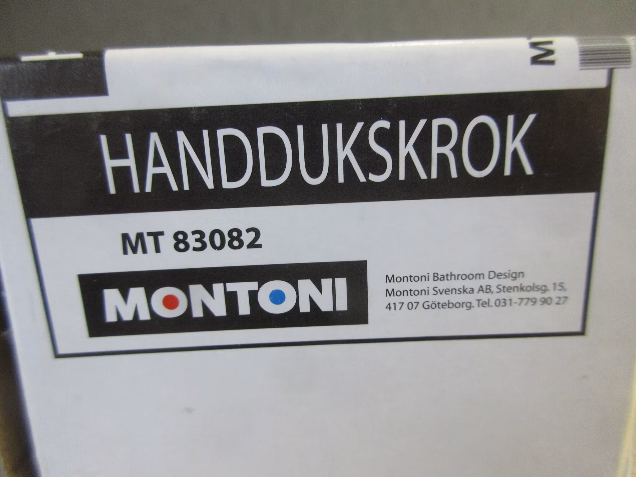 Handdukskrok Montoni Polerad kromMontoni Bathroom Design MT 83082Mått fästplattan mot vägg: 1,5 x 5 cm. Längd på krok 8,5 cm. Diameter 2 cm.Skruv för traditione