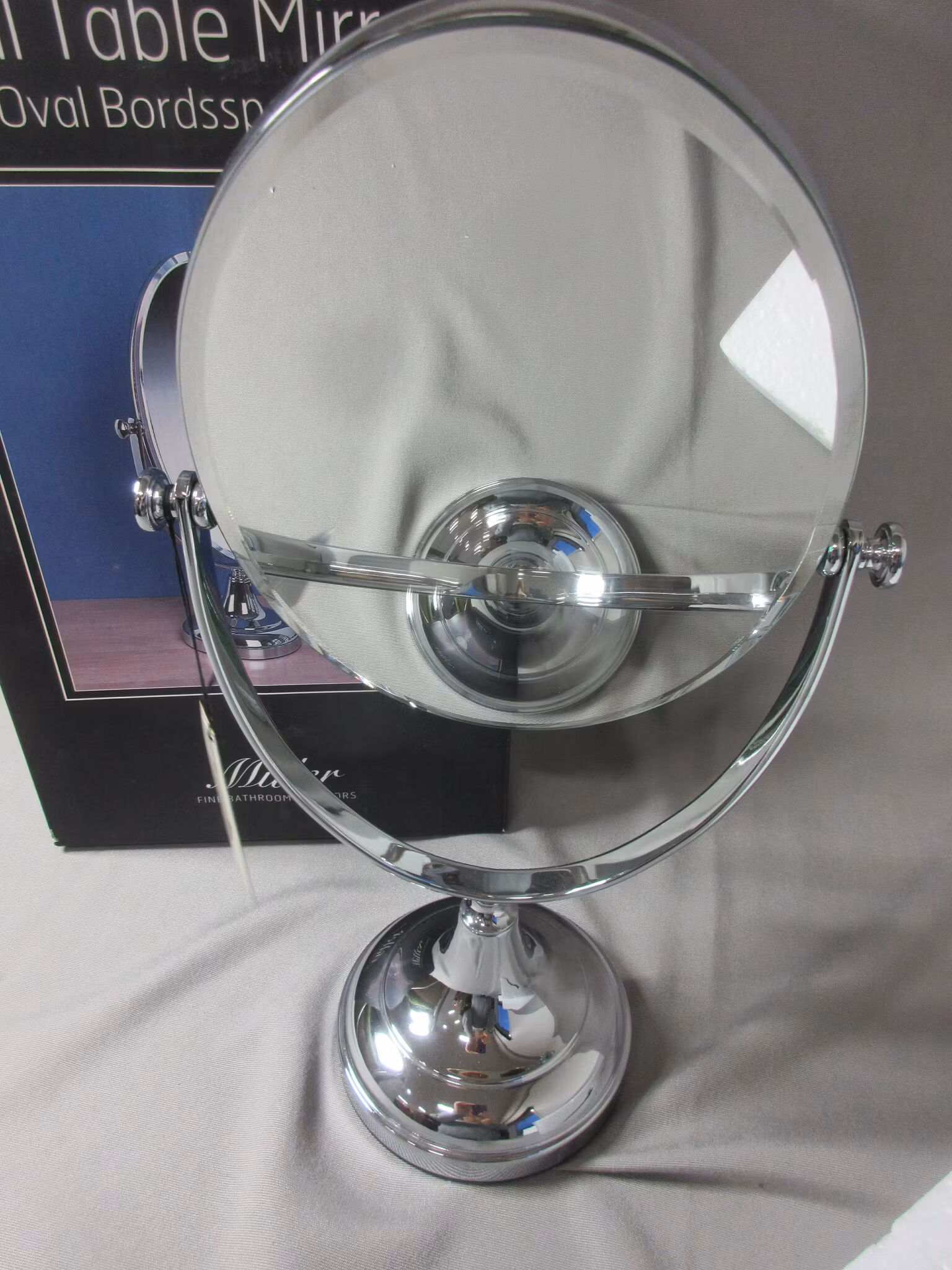 Miller Oval Bordsspegel, 687CFasettslipade speglar på båda sidor, svängbar.Material: Massiv mässing med yta av polerad kromB225 x H405 mmVarumärke Miller Bad
