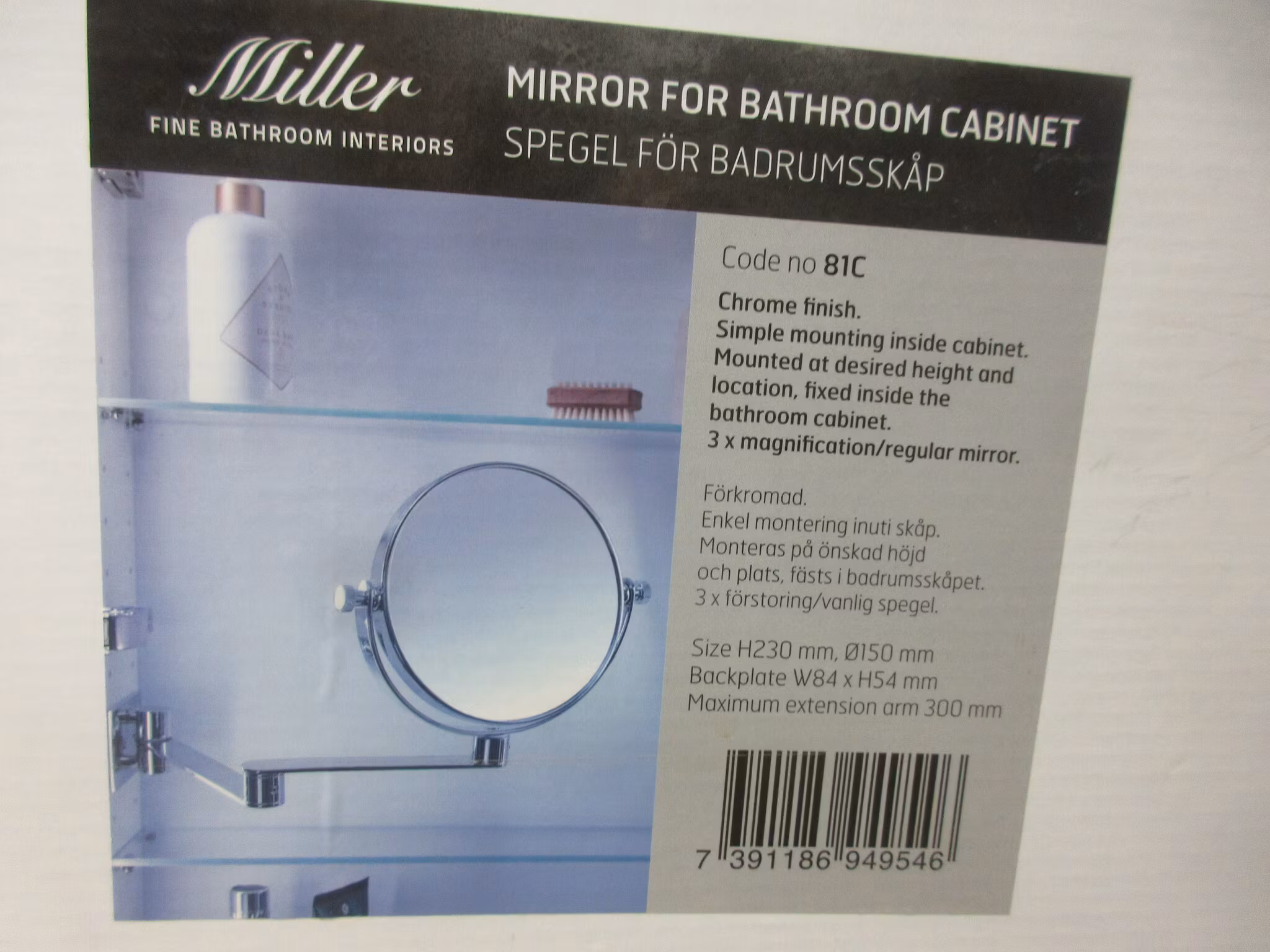 Miller Spegel för Badrumsskåp 3x förstoring. 81C