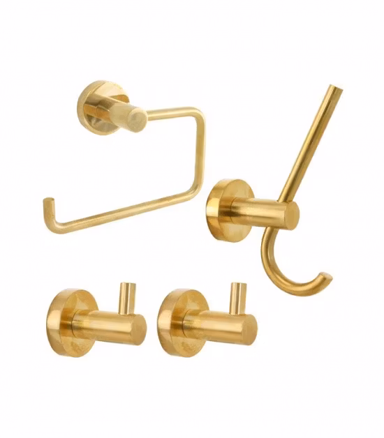 Miller Start-box Bond Mässing, 8701CStart-Box med badrumstillbehör i Bond-serien. I paketet ingår en toalettpappershållare, en dubbelkrok och två enkelkrokar.Va