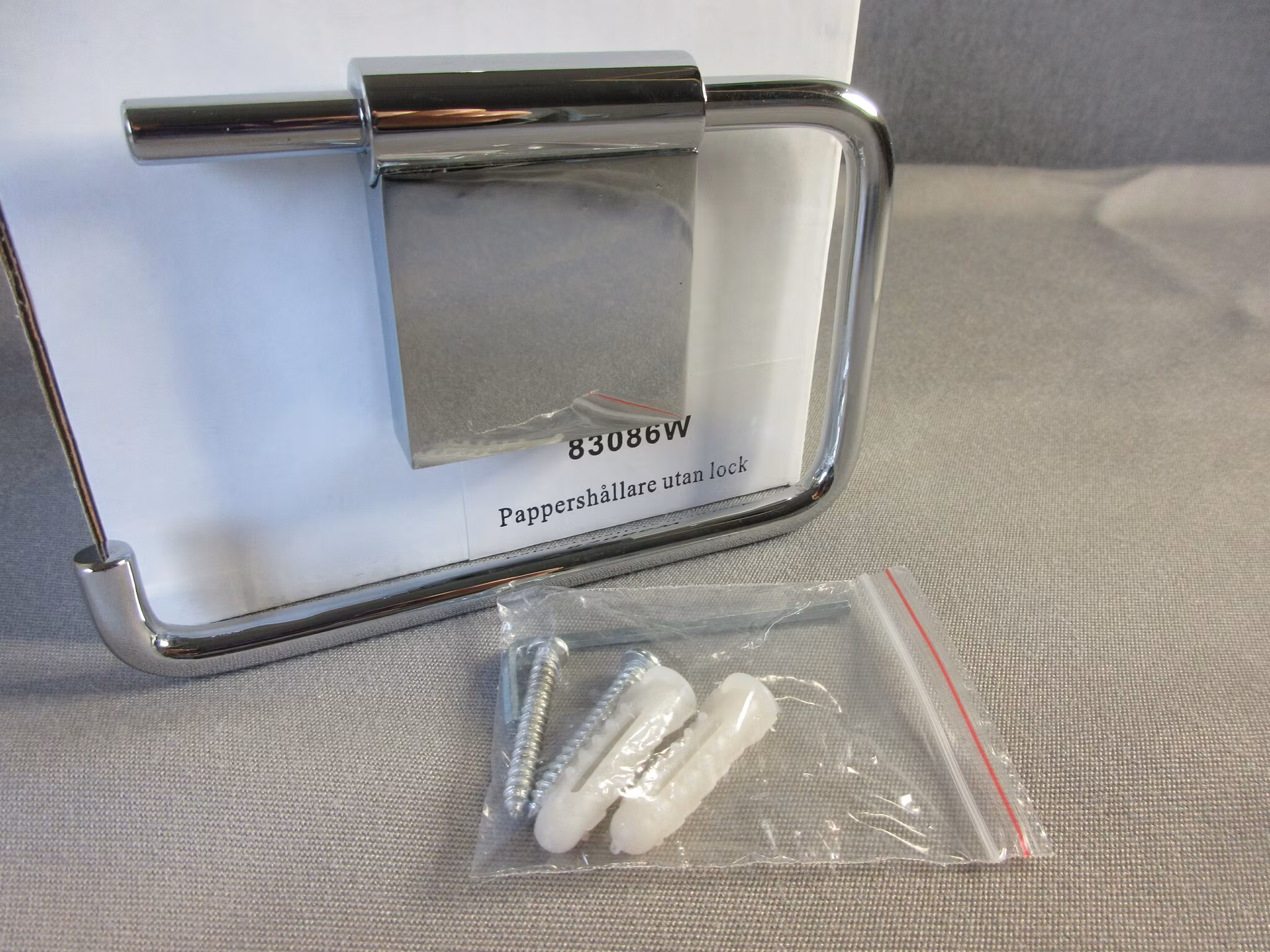 Pappershållare utan lock, Polerad kromArt nr 83086WMått 13,5 x 9 cm.Skruv för traditionell montering ingår.