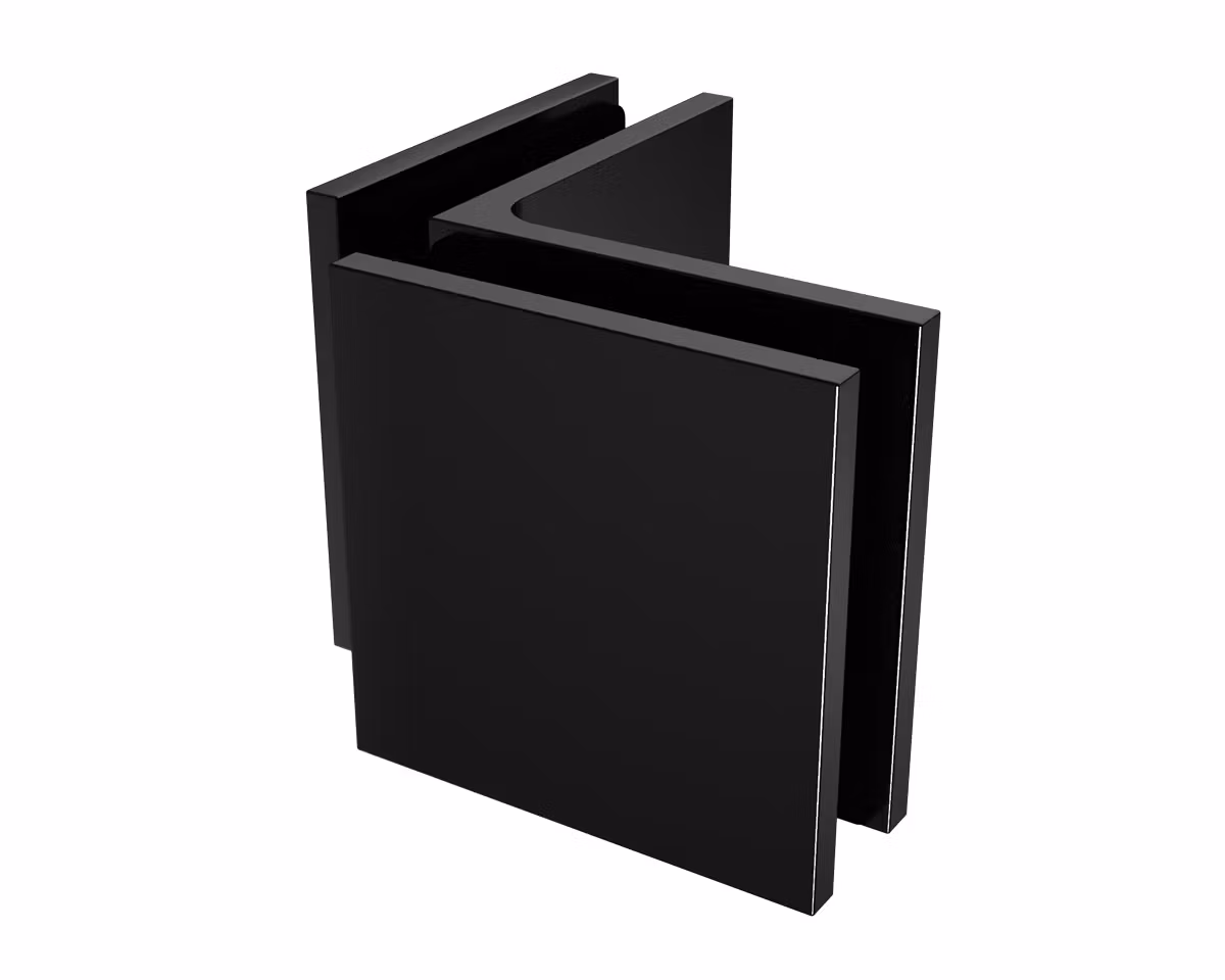 Kopplingsbeslag för duschvägg monterad i 90° glas–glas.