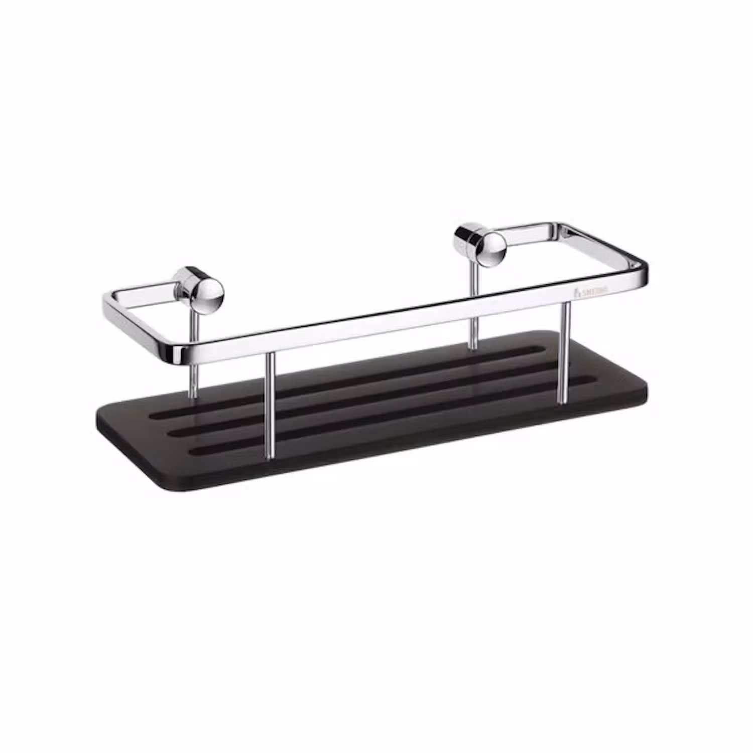Tvålkorg i polerad krom med bottenplatta i svart. Dold fastsättning.