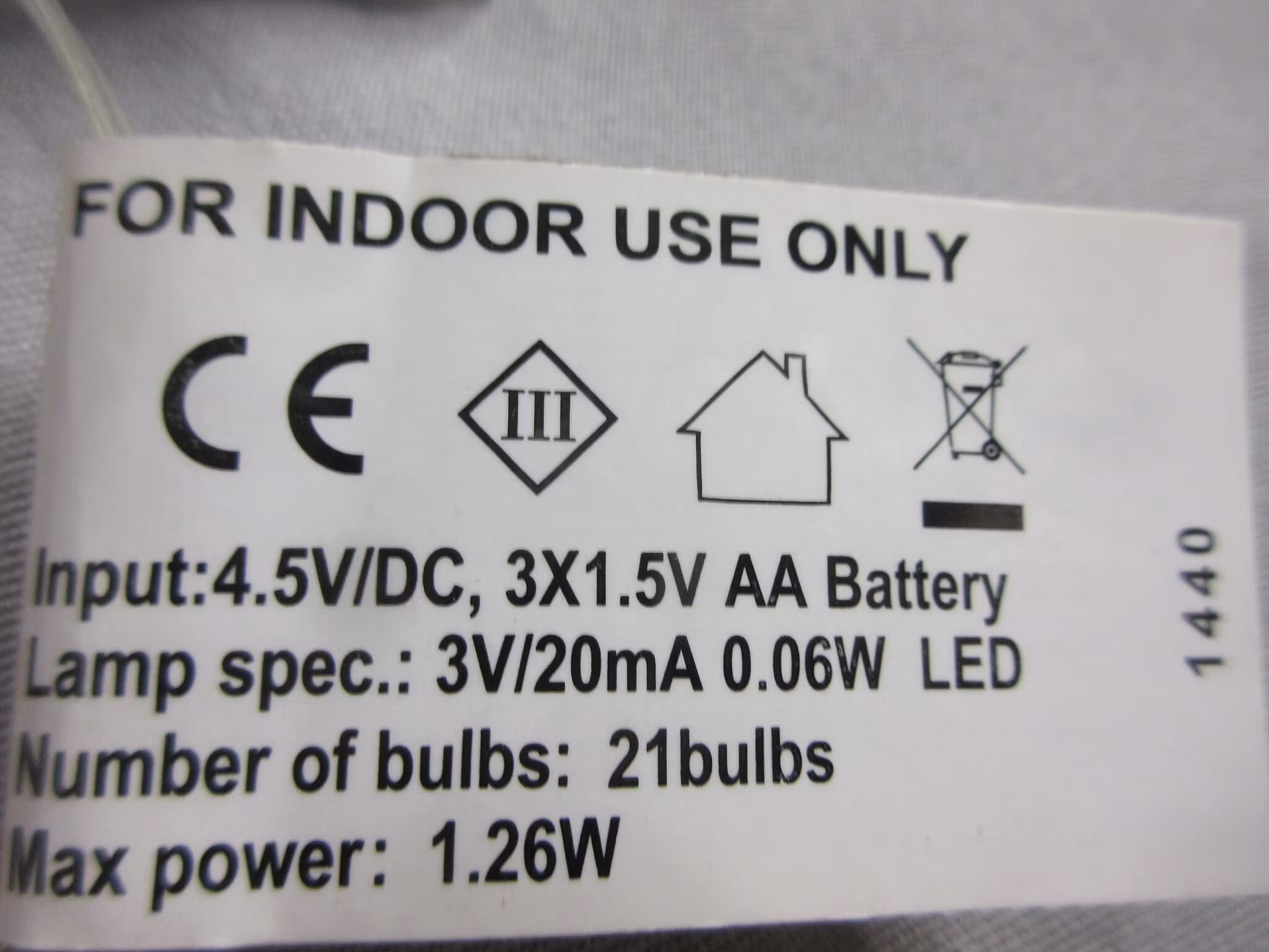 Batteriinformation 3 batterier AA ingår ej. Brinntid ca. 150h.