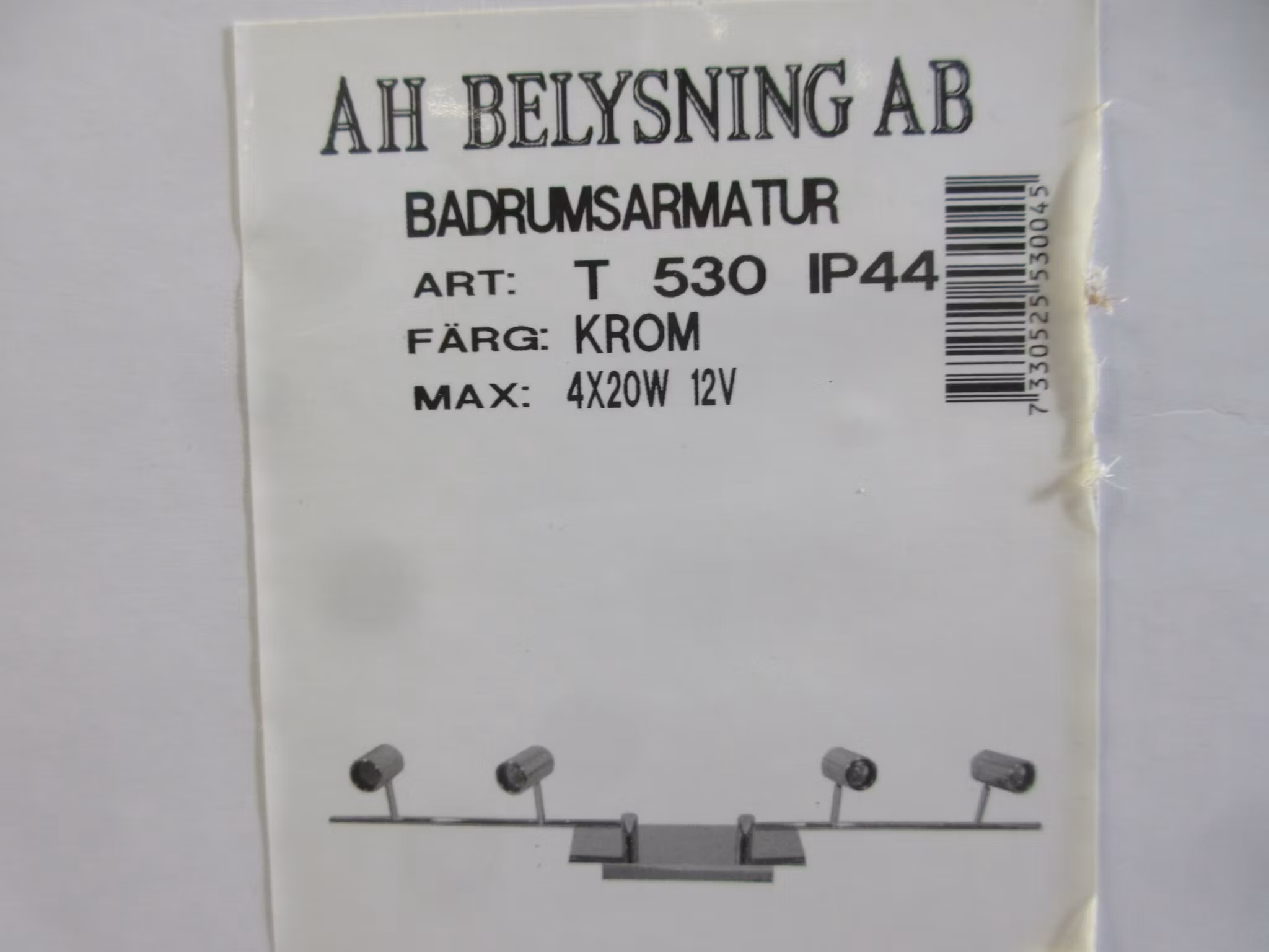 AH Belysning Badrumsarmatur IP44. T530Art nr T 530Färg KromMax 4x20W 12VEAN 7330525530045