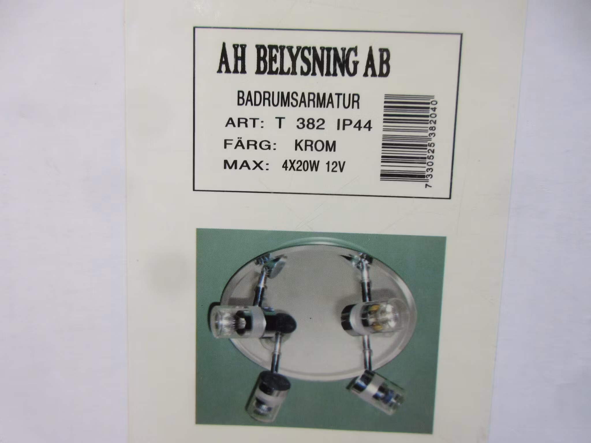 AH Belysning Badrumsarmatur T 382 IP44Färg KromMax 4x20W12VAB Armaturhantverk, tidigare känt som AH Belysning,EAN 7330525382040
