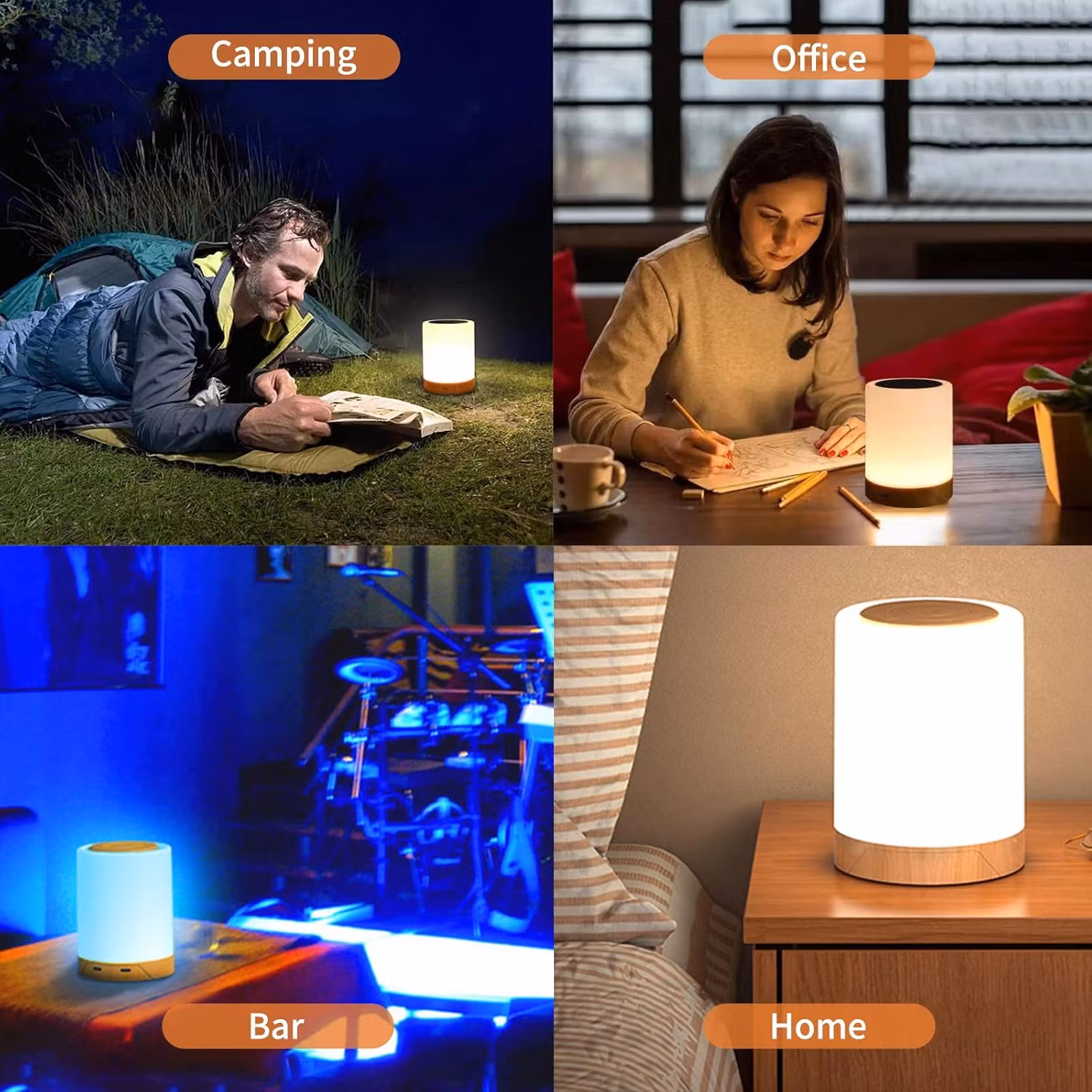 Bordslampa, peksensor, justerbart vitt och RGB-ljus, 2 st.