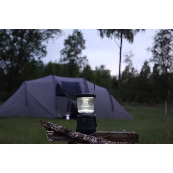 Dimbar campinglykta som är enkel att ha med sig. Lyktan drivs av solenergi och har ett smidigt handtag som gör den lätt att hänga upp i tältet. Ett måste för varje campingtur.