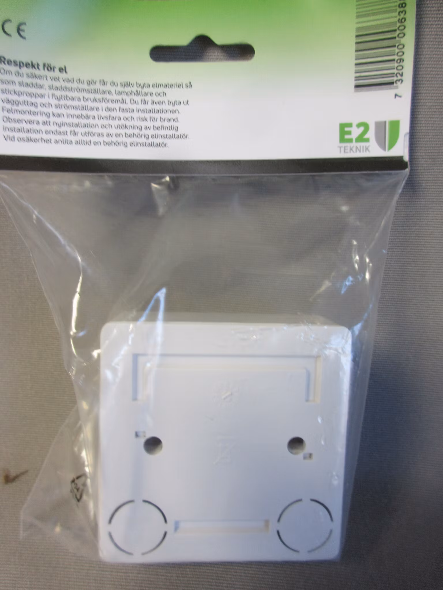 E2 Teknik Vägguttag 1-v mj ps utp vit. 9782430Utanpåliggande 1-vägsPetskyddat med jord9782430EAN: 7320900006388