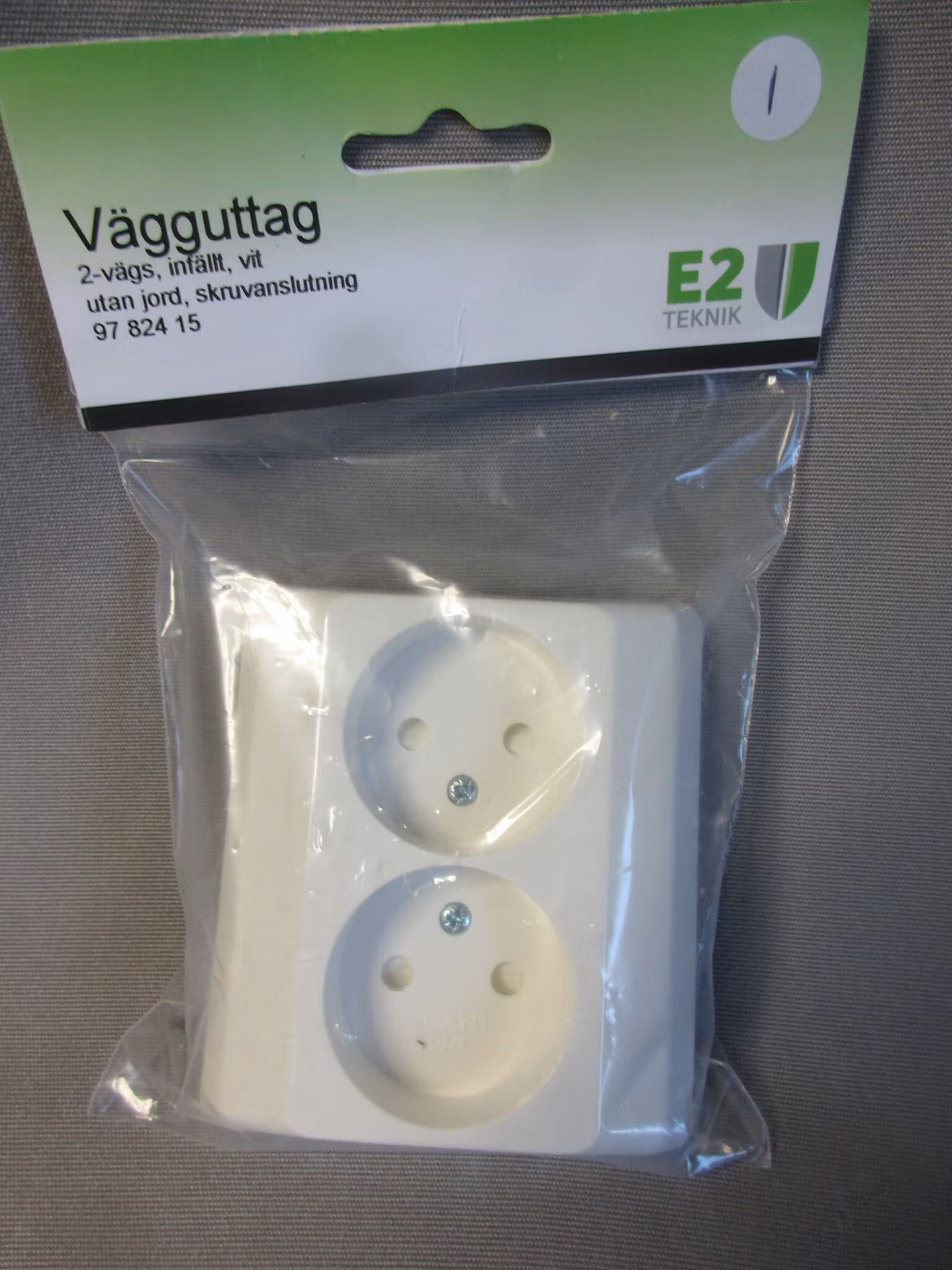 E2 Teknik Vägguttag 2-V. 97824152-vägs, infällt, vitUtan jord, skruvanslutning.9782415