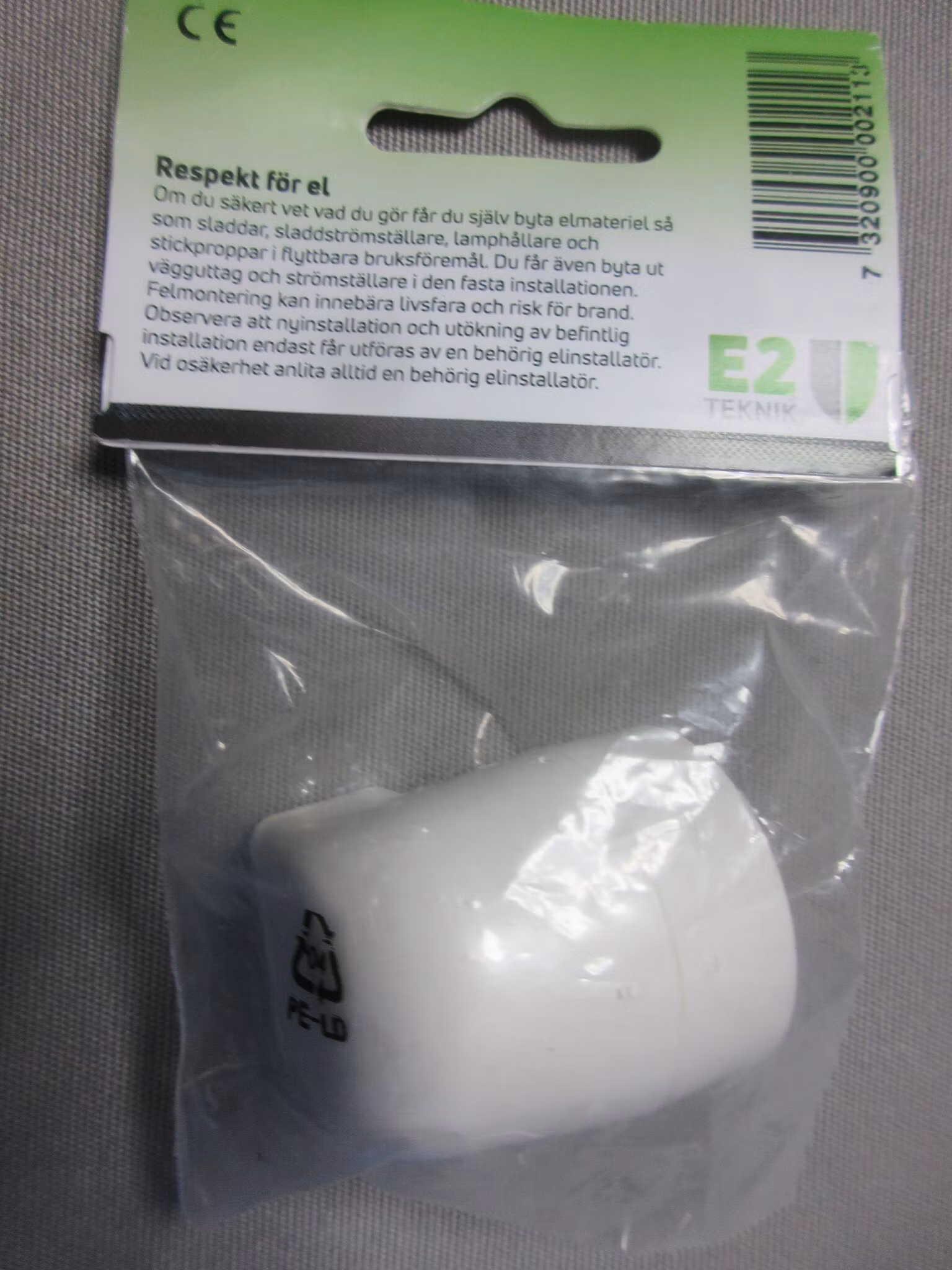 Lamputtag 2-pol. Vinklat för sladd med jord 6A 250V 9780886E2 TeknikVit