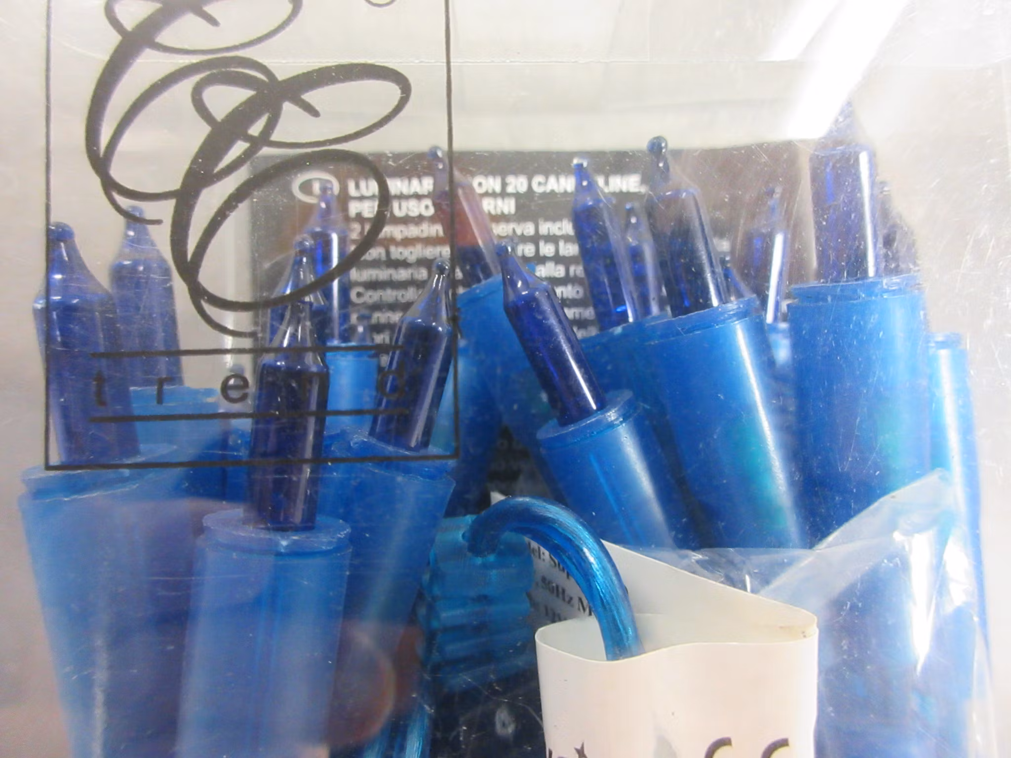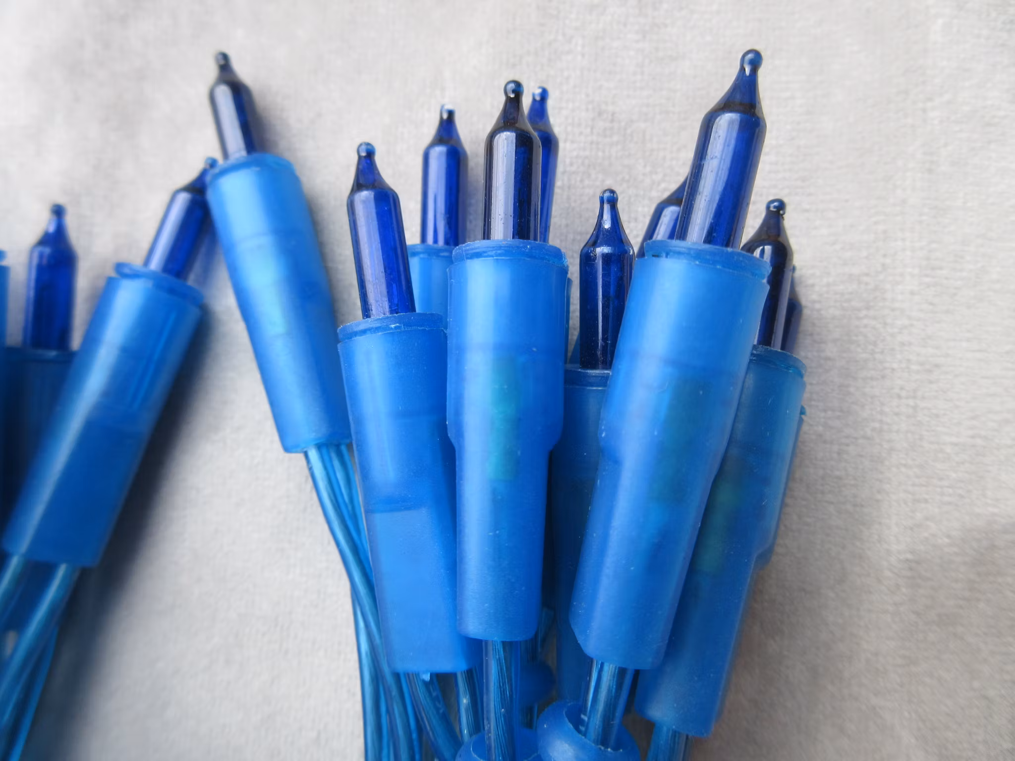 Ljusslinga på 285cm med 20 ljus i färgen blå. Jättefin att dekorera med i hemmet på bord, trappor och i granen. Lamporna har push-in sockel.