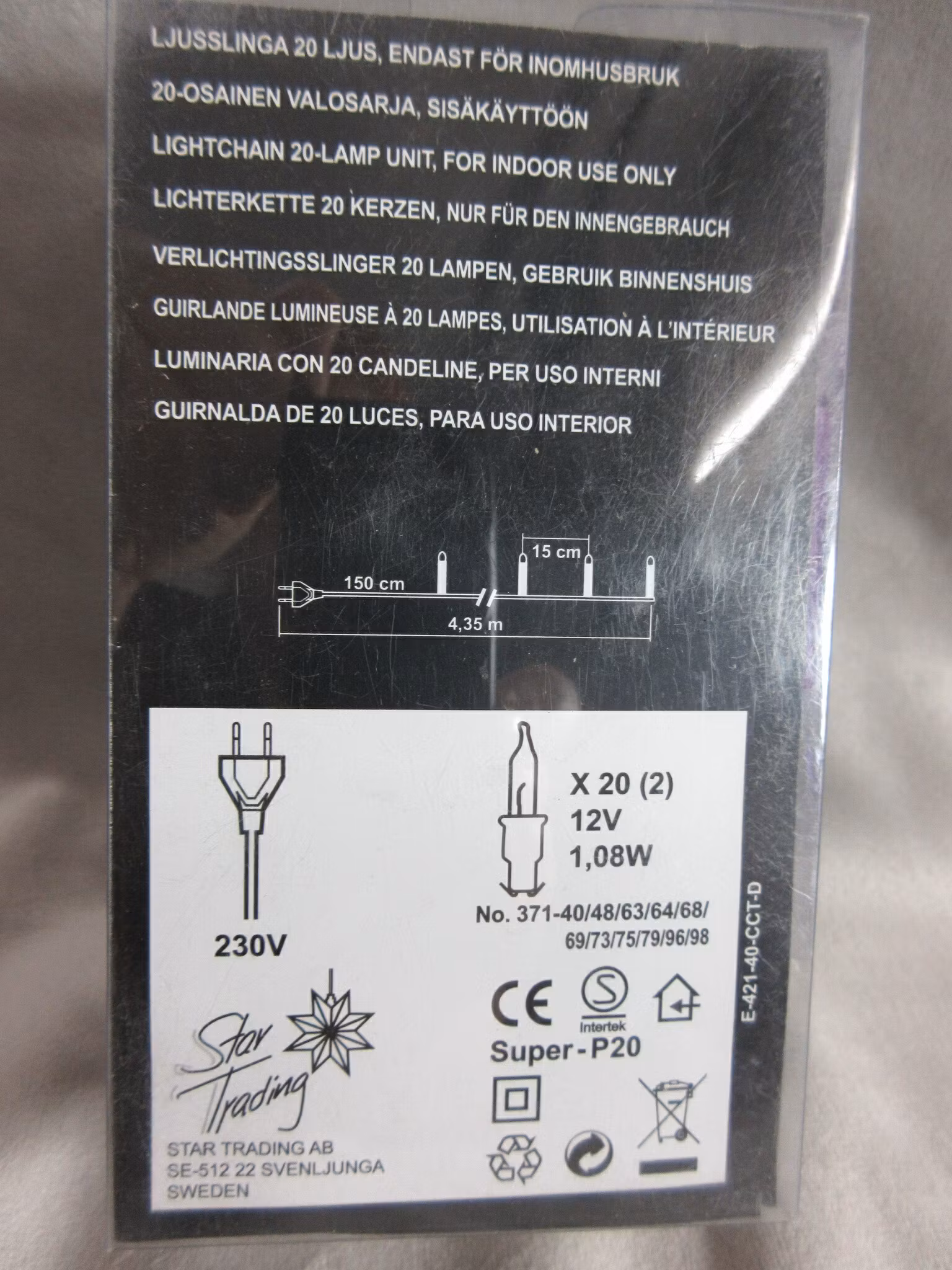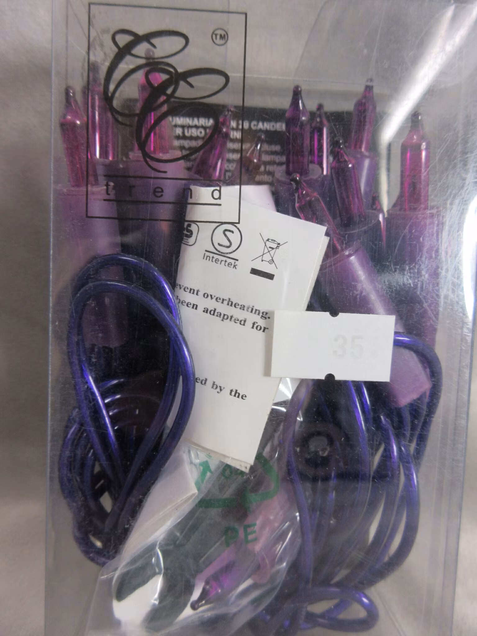 Ljusslinga på 285cm med 20 ljus i färgen Lila. Jättefin att dekorera med i hemmet på bord, trappor och i granen. Lamporna har push-in sockel.