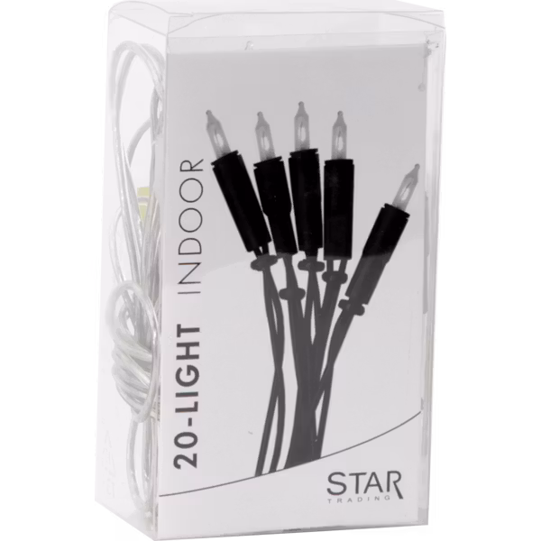 Ljusslinga med 20 ljuskällor för inomhusbruk. Jättefin att dekorera med i hemmet på bord, trappor och i granen. Längden är 265cm och kabeln är i transparent färg.