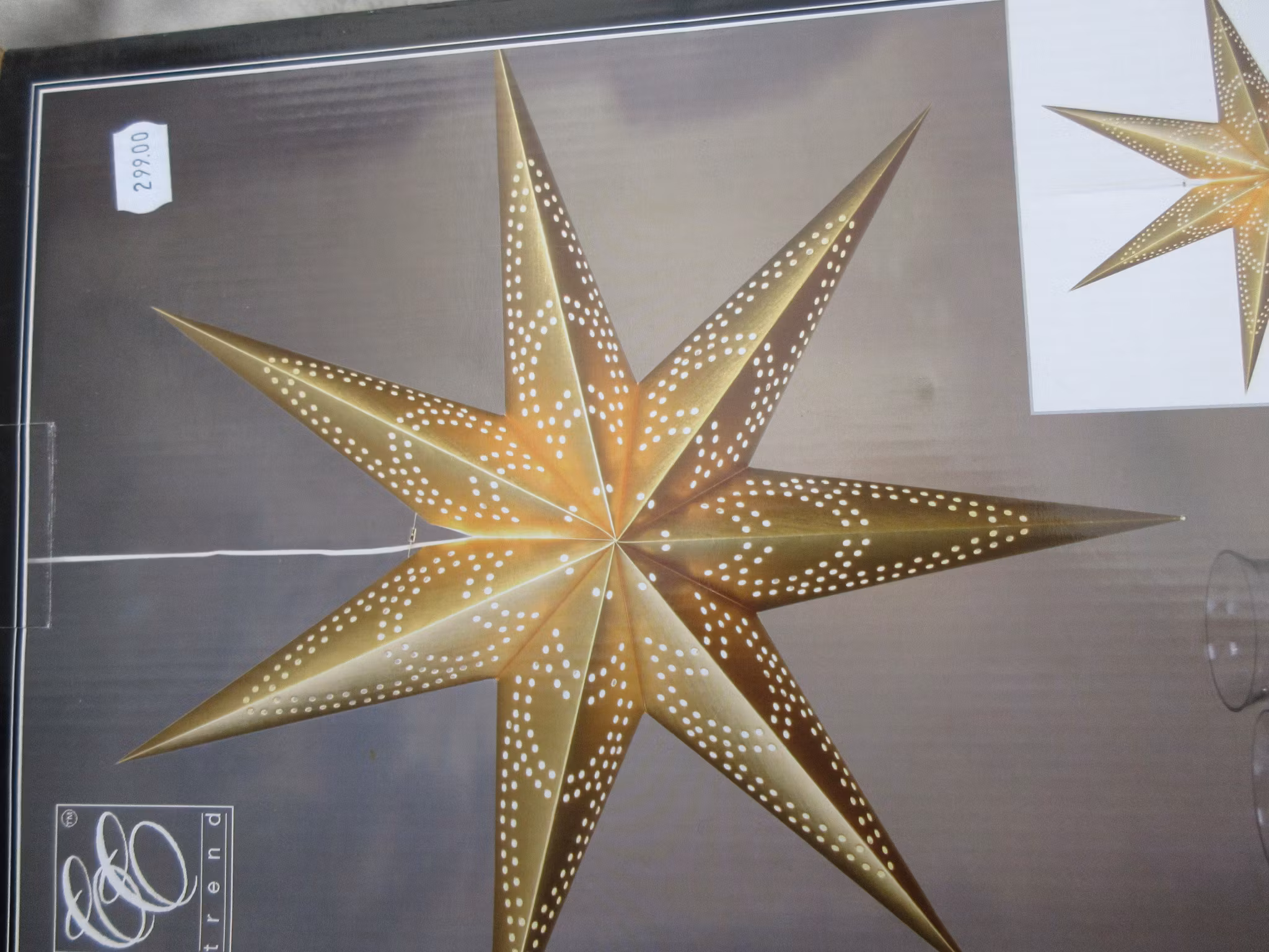 Stjärna med ett elegant utseende. Stjärnan har fina mönster och placeras utmärkt hängandes i ett fönster.