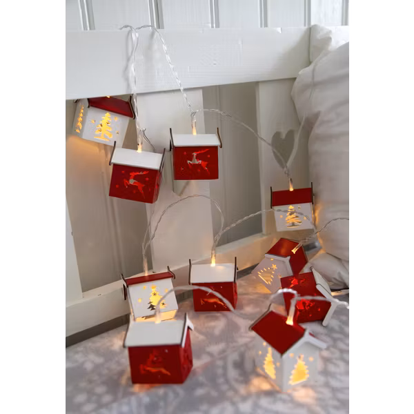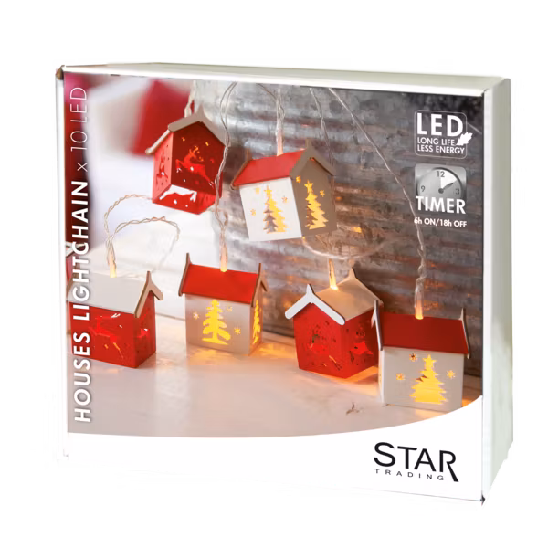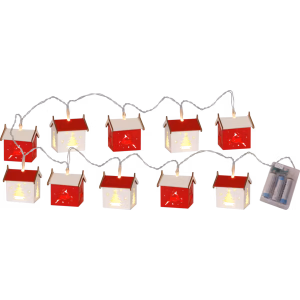 Fin dekorationsslinga med 10 LED-ljus-hus. Kan användas vid diverse dekorationer, vid tex dukningar, blomsterarrangemang, i fönster, på väggen osv. Slingan är batteridriven och har en smidig timerfunktion.