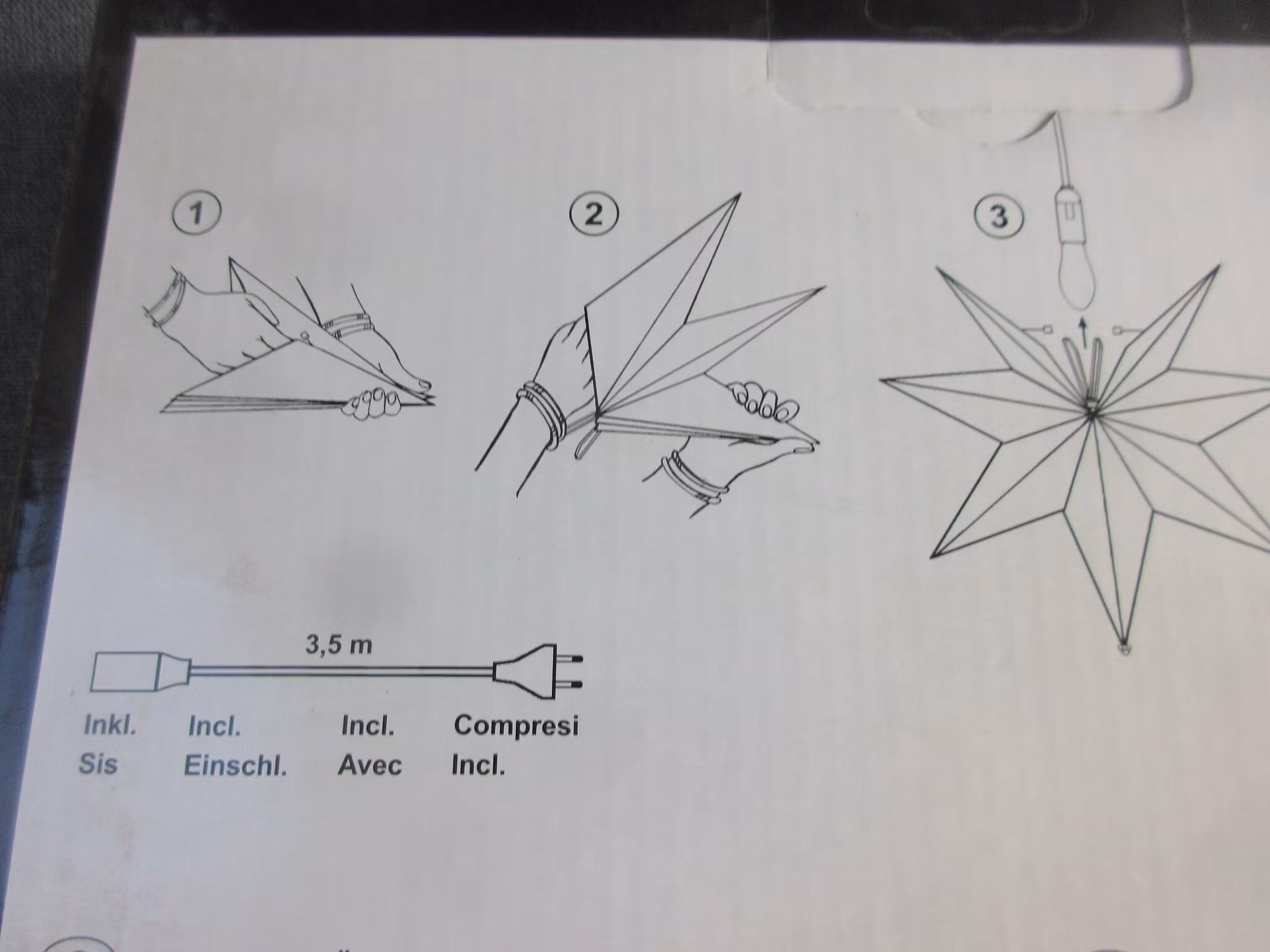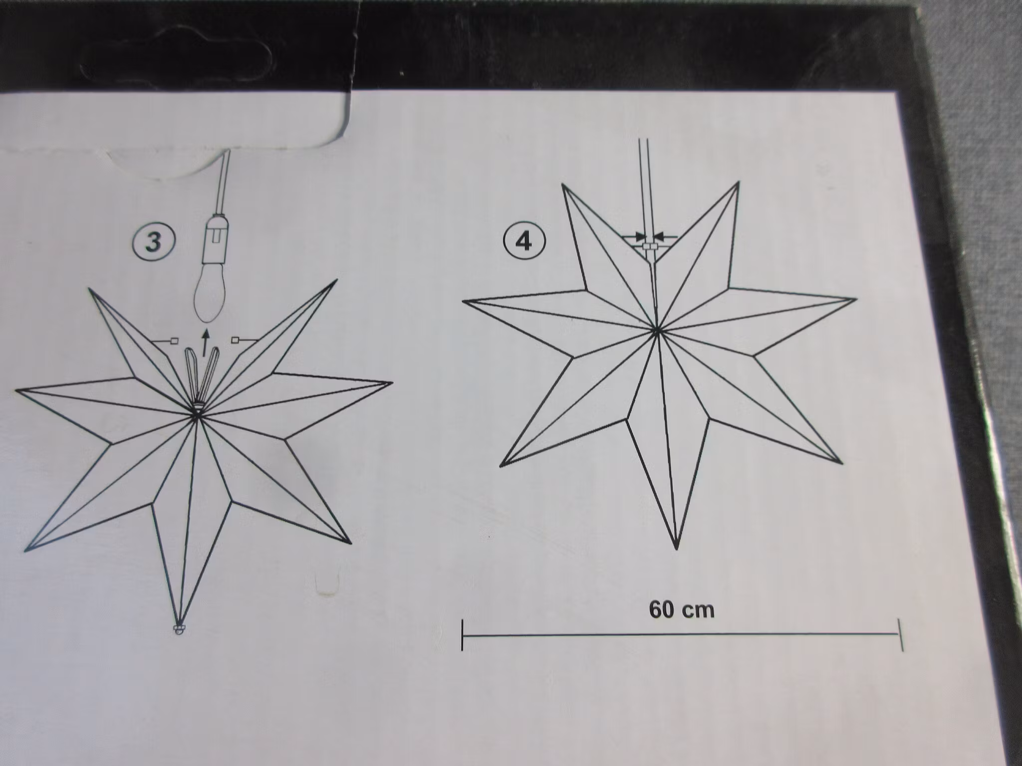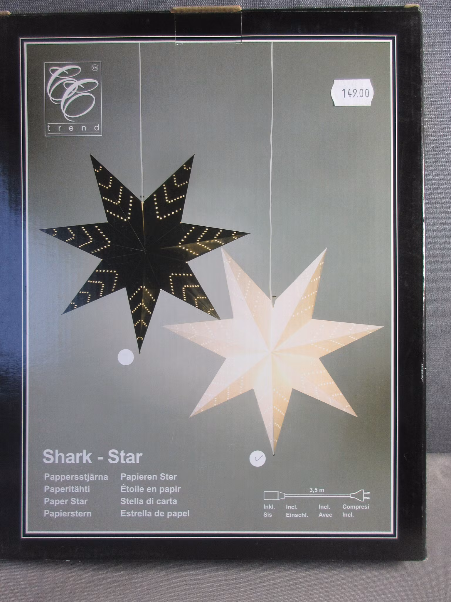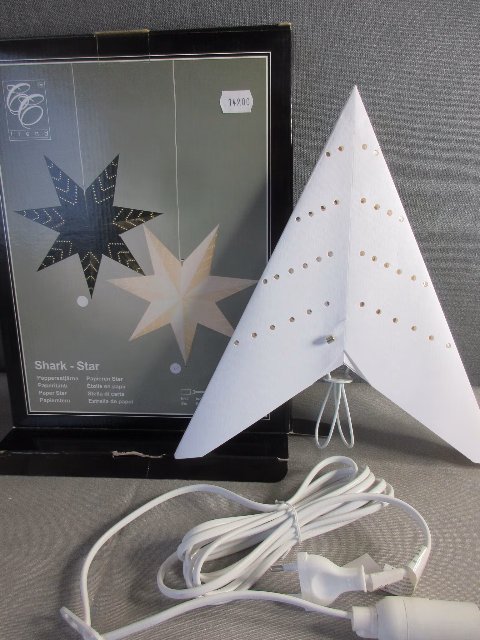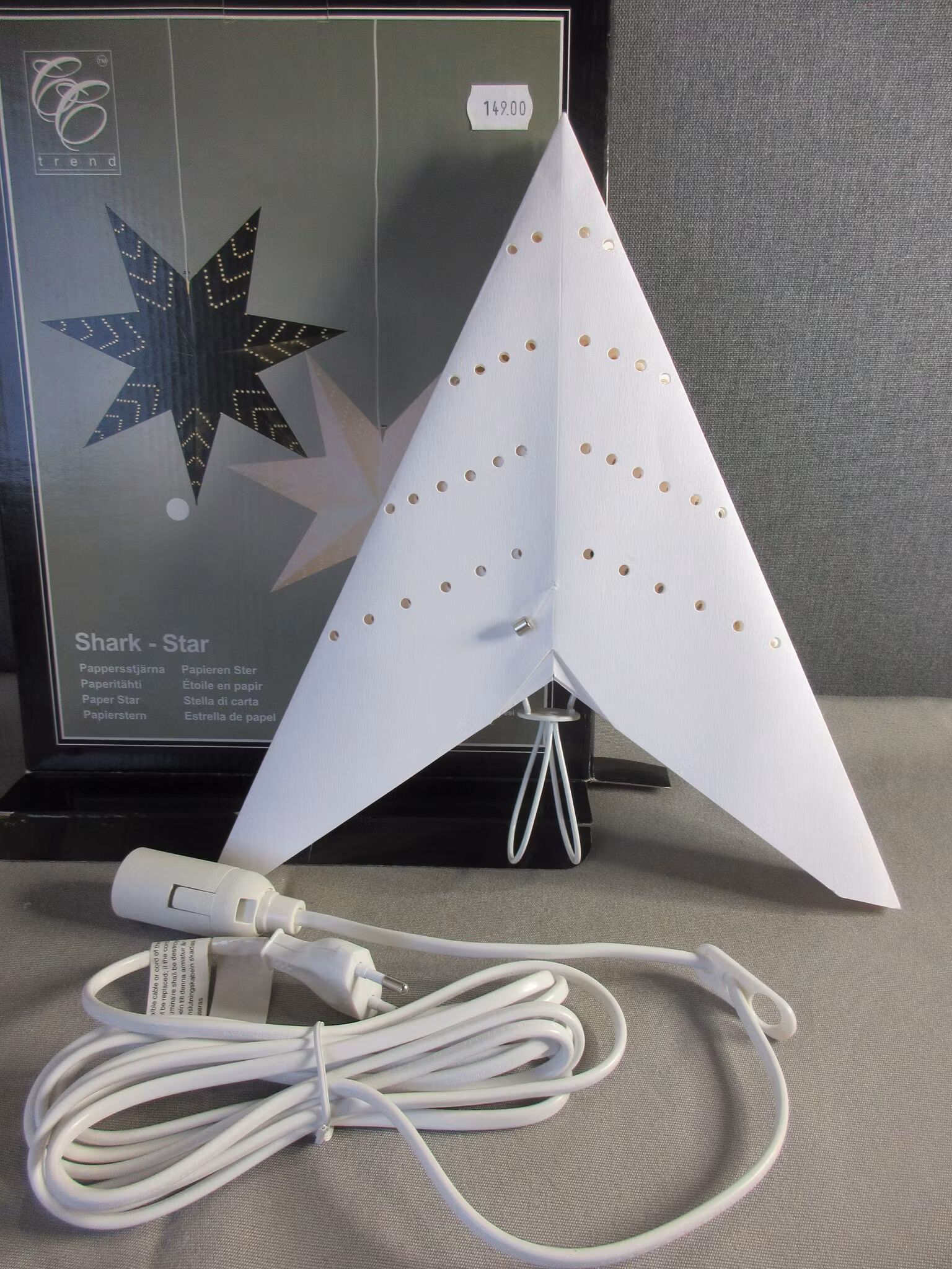 Pappersstjärna Shark Star Vit, 60 cm.Inkl 3,5 m. kabel230VMax 25WE14Magnet lockStar Trading No. 236-02