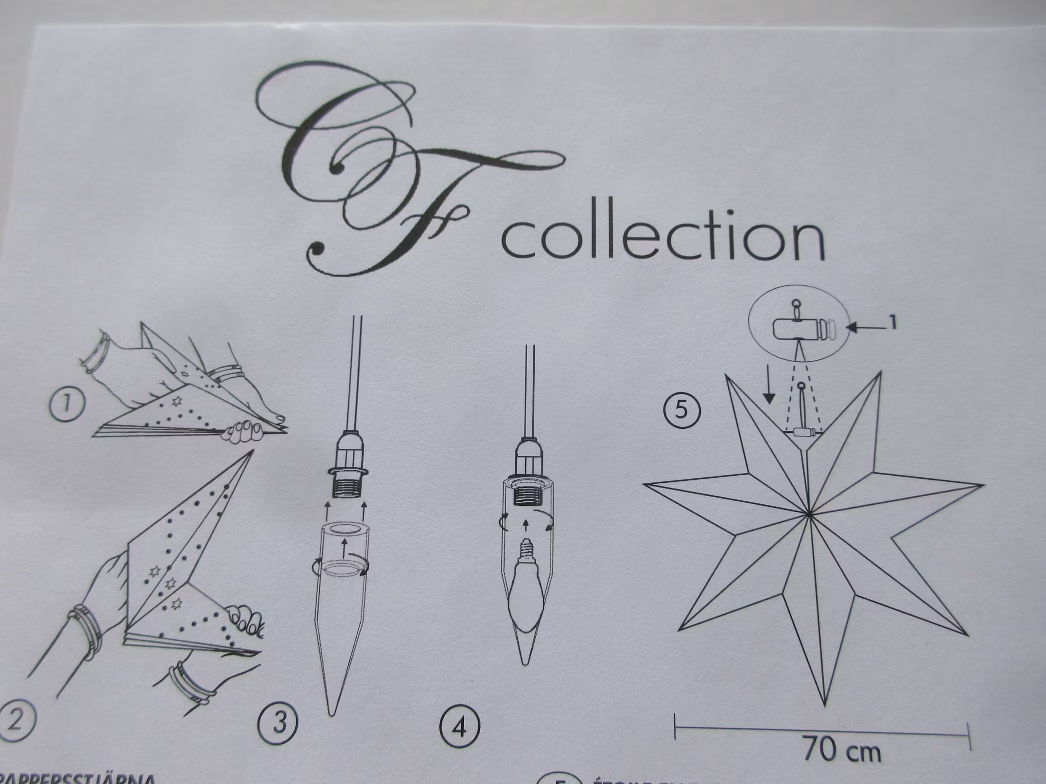 Pappersstjärna Skimra Silver, 70 cm. inkl. kabel