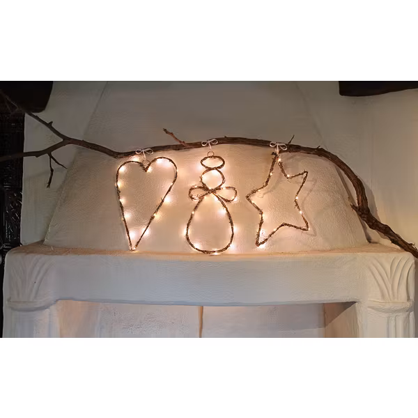 Siluett pilängel med en 15 LED-ljusslinga. Underbar dekoration med varmvitt sken att inreda med i hemmet. Den inbyggda timern gör det lätt att ställa in när ängeln ska lysa.