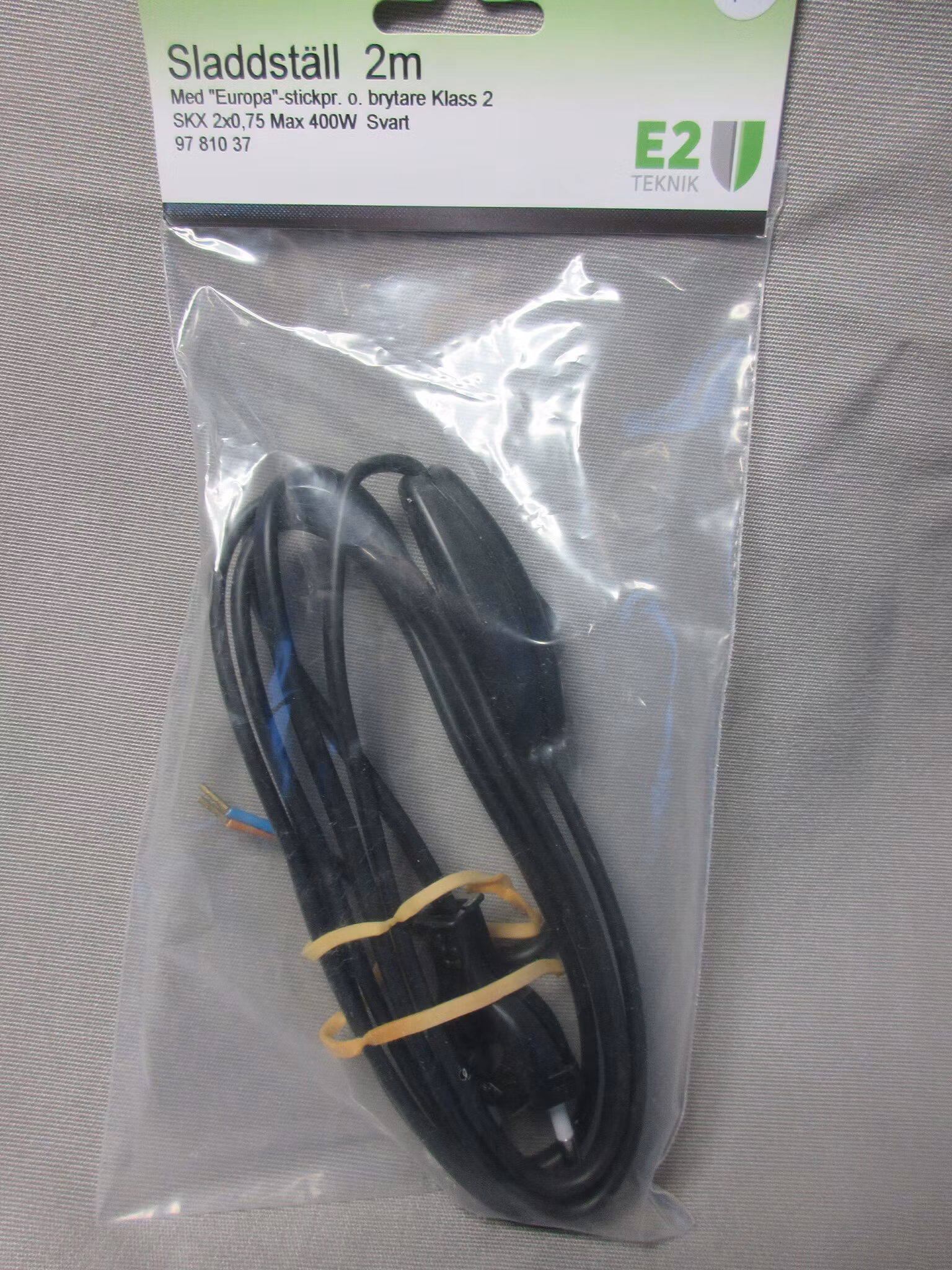 Sladdställ 2m. m europropp & bryt. 9781037SvartSKX 2x0,75 svart kl2E2 Teknik