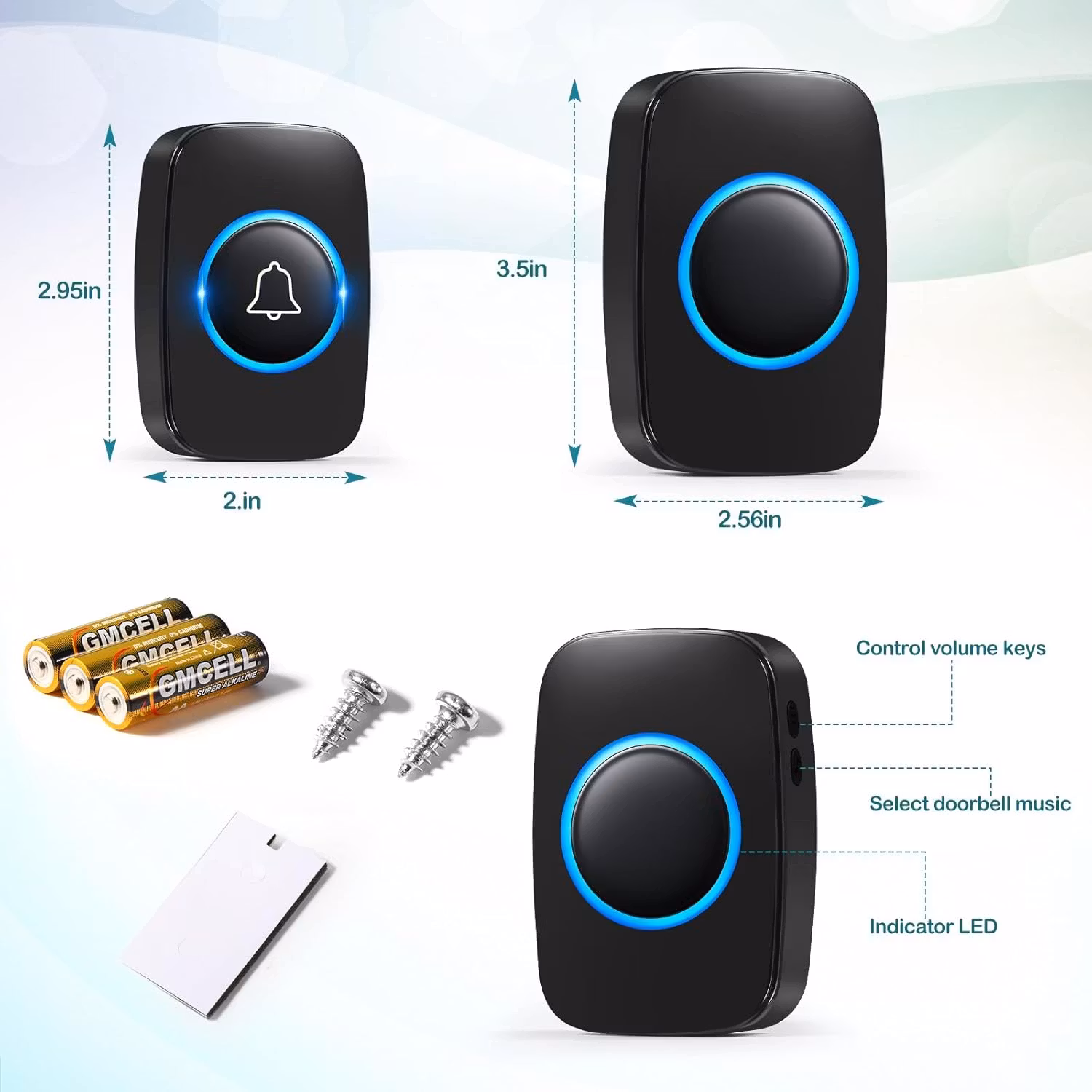 Wireless Doorbell with Battery - Equipped with three 1.5V batteries, this door chime offers stable long-term use, eliminating the hassle of frequent battery changes and ensuring that the chime is always ready to alert.