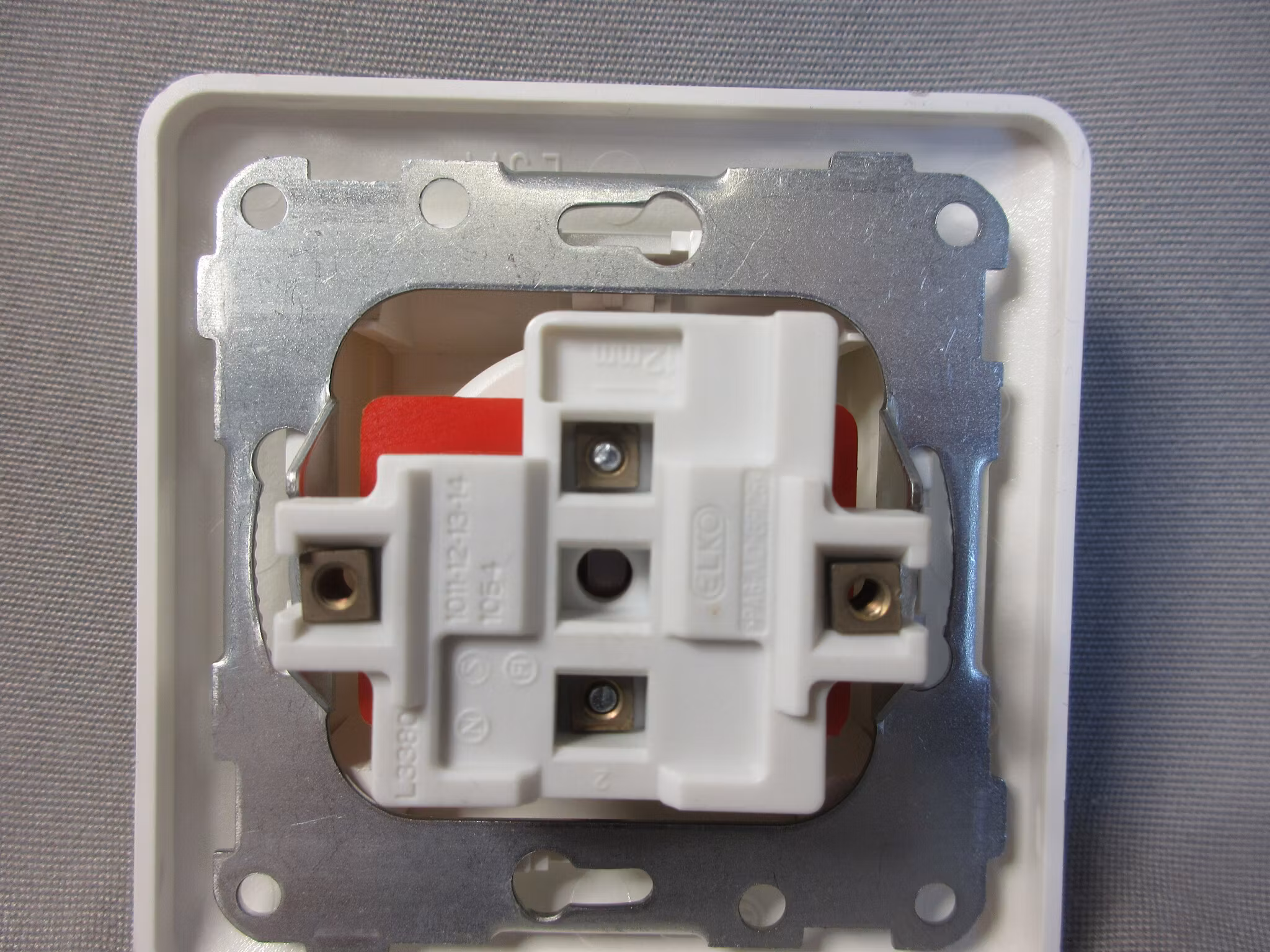 Sockel, täckplatta, lock och ram av halogenfri termoplast. Dubbla anslutningar per fas. Förmontage i c/c 60mm appratdosa.