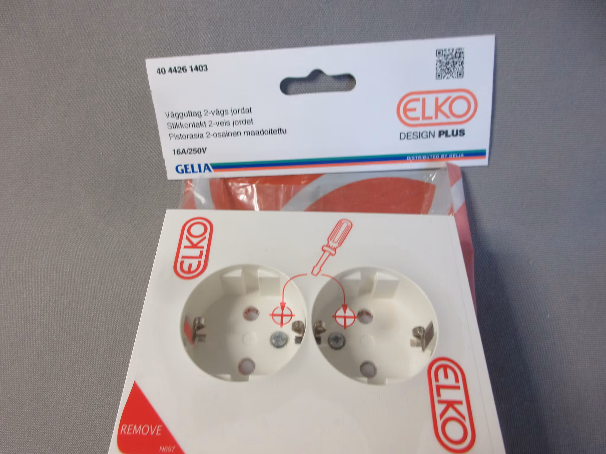 ELKO Vägguttag 2-vägs jordatInfälld kräver 11/2 dosa404426140316A/250VEan 7318270001249