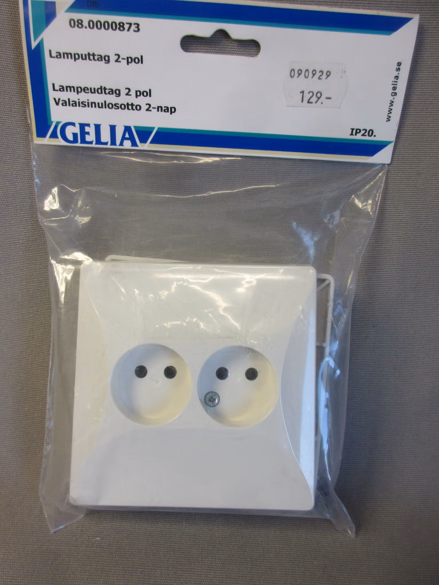 GELIA Lamputtag 2-pol, OjordadUtanpåliggandeIP20TermoplastPolarvit, utan jordMått 95x95 mm08.0000873Ean 7318270008736