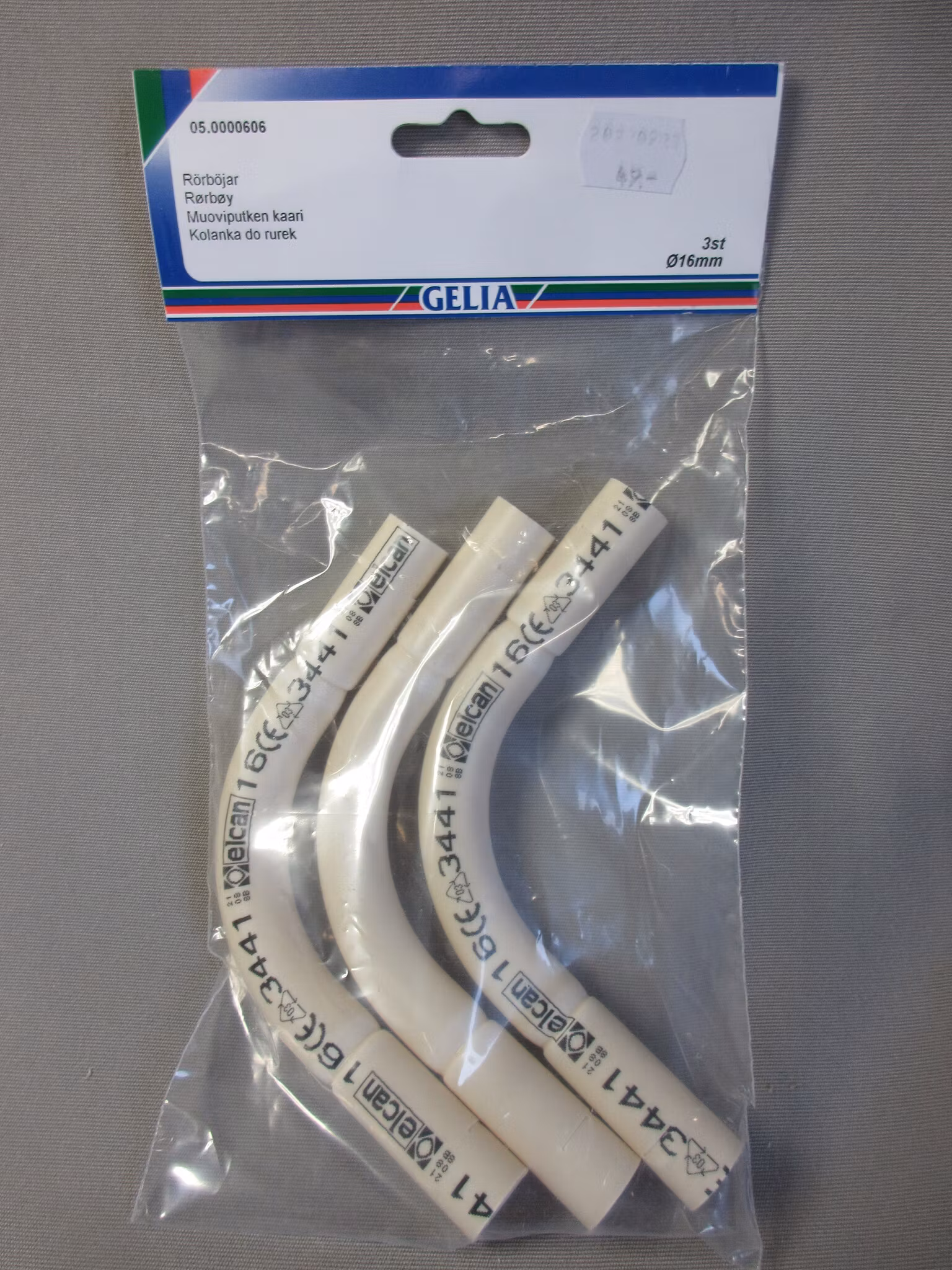 GELIA Rörböjar Ø 16 mm. 3 st.Rörböj för VP-rör 16 mm.EAN 7318270006060