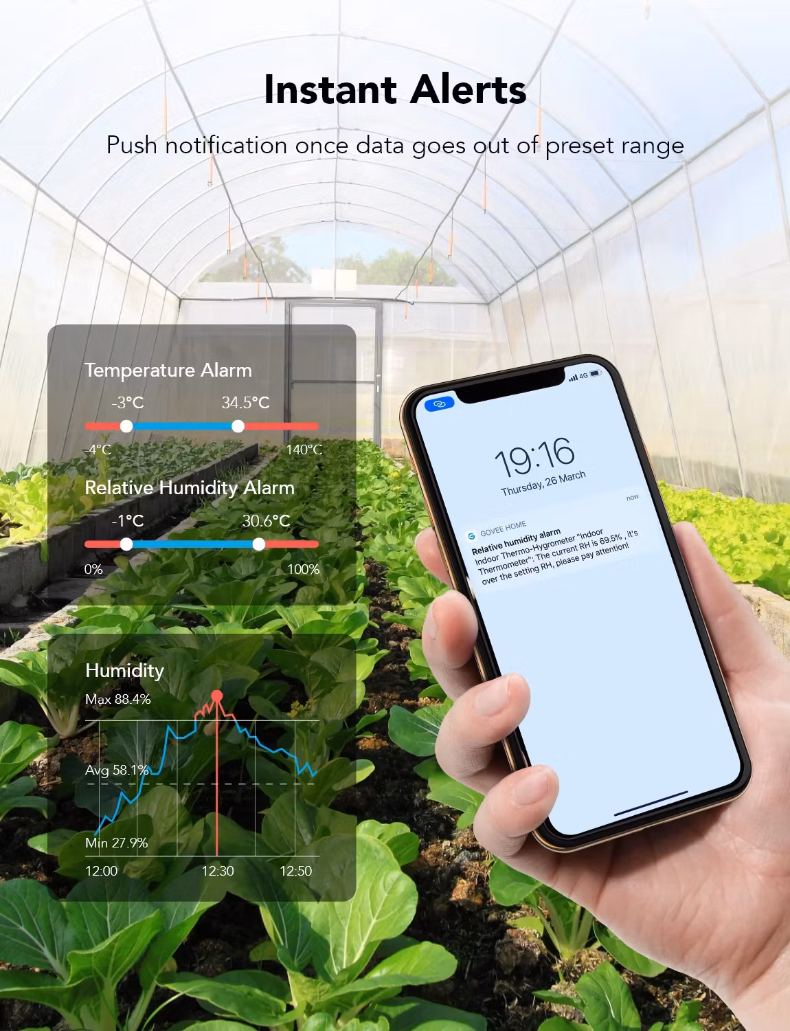 Smart Features: Remote monitoring and temp humidity graphs. Our humidity meters are reliable and easy to use for homes, greenhouses, and more.