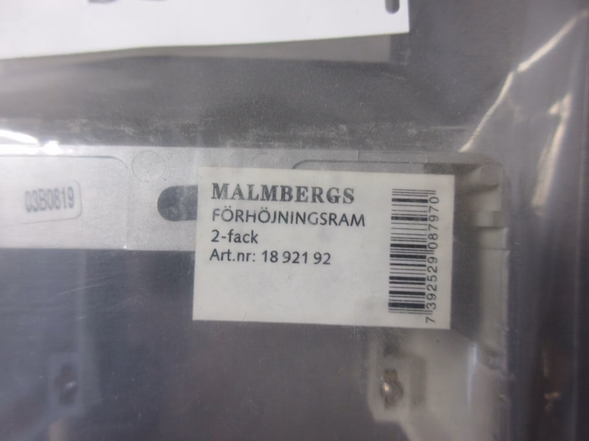 Malmbergs Förhöjningsram 2-fack Grå 1892192För montage av infällda strömställare och vägguttag utanpåliggande.Utförande 2-fackMalmbergs Artnr 1892192GråEAN-nr 7