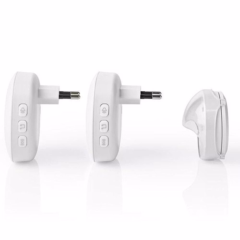 Den här trådlösa dörrklockan är väldigt enkel att installera. Anslut mottagaren och montera sändaren på dörren med medföljande material. Klockan är sedan redo att användas! Med denna ringklocka som drivs via elnätet slipper du urladdade batterier. Batteridriven sändare för enkel installation utan sladdar och ett brett användningsområde utomhus med max 300 meter räckvidd. Paketet innehåller en extra mottagare för användning i uthus eller på vinden.