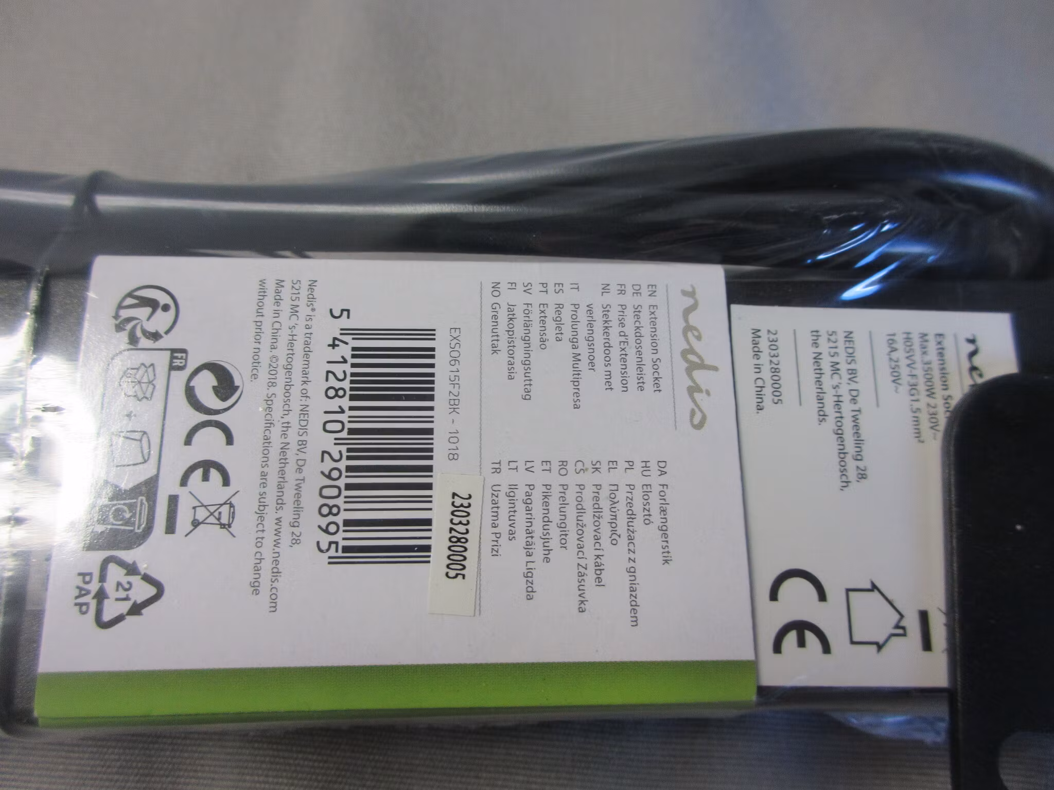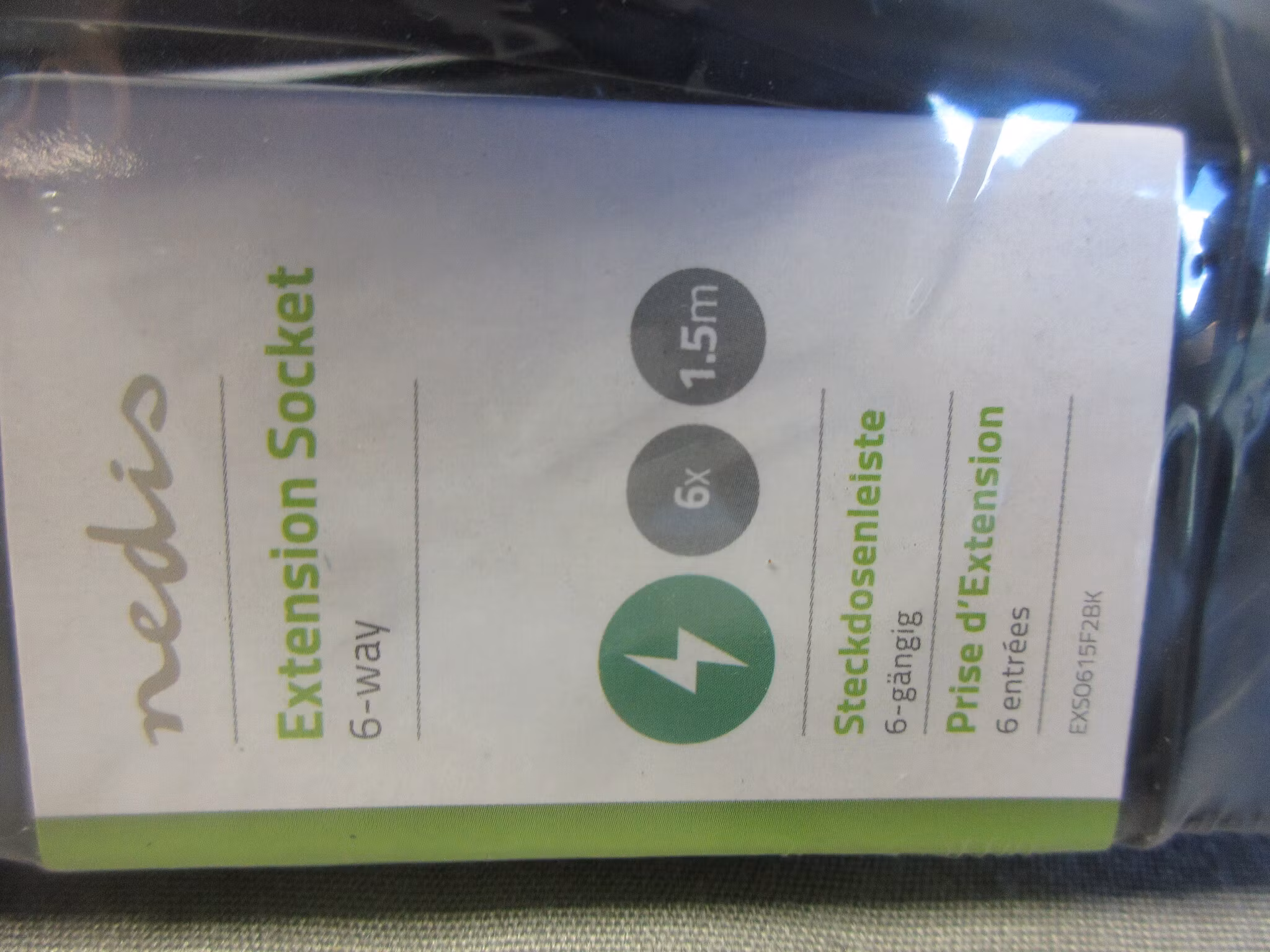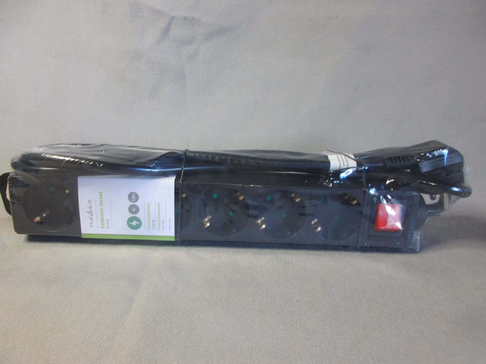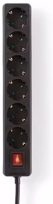 Grenuttag NEDIS Jordad med 6 uttag och strömbrytare. Förlängningsuttag med barnsäkerhetsbrytare som delar upp ett vägguttag till sex strömställen. Det är utrustat med en strömbrytare för att stänga av alla uttag med en tryckning och med en lång kabel för anslutning till elektriska apparater där hemma eller på kontoret.