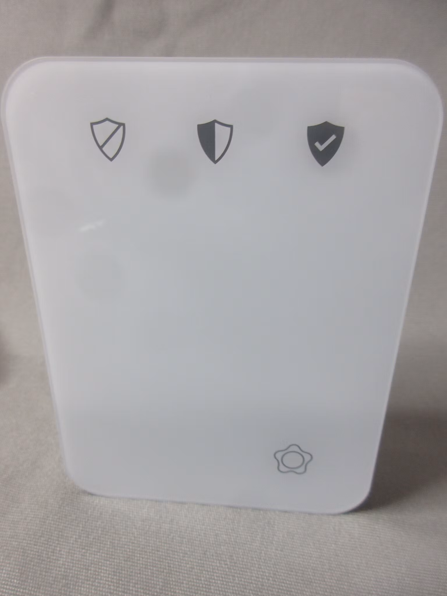 Jämfört med de flesta andra larmpaneler består displayens touchscreenen av glas. Glaset ger en behaglig känsla för användaren och är enkel att torka av. Larmpanelen är även utrustad med LED-lampor som tydligt signalerar genom färgkoder vilken status ditt system har eller vilket larm som har löst ut. Exempelvis blinkar de rött vid larm för inbrott eller brand och blått vid larm för vattenläcka.