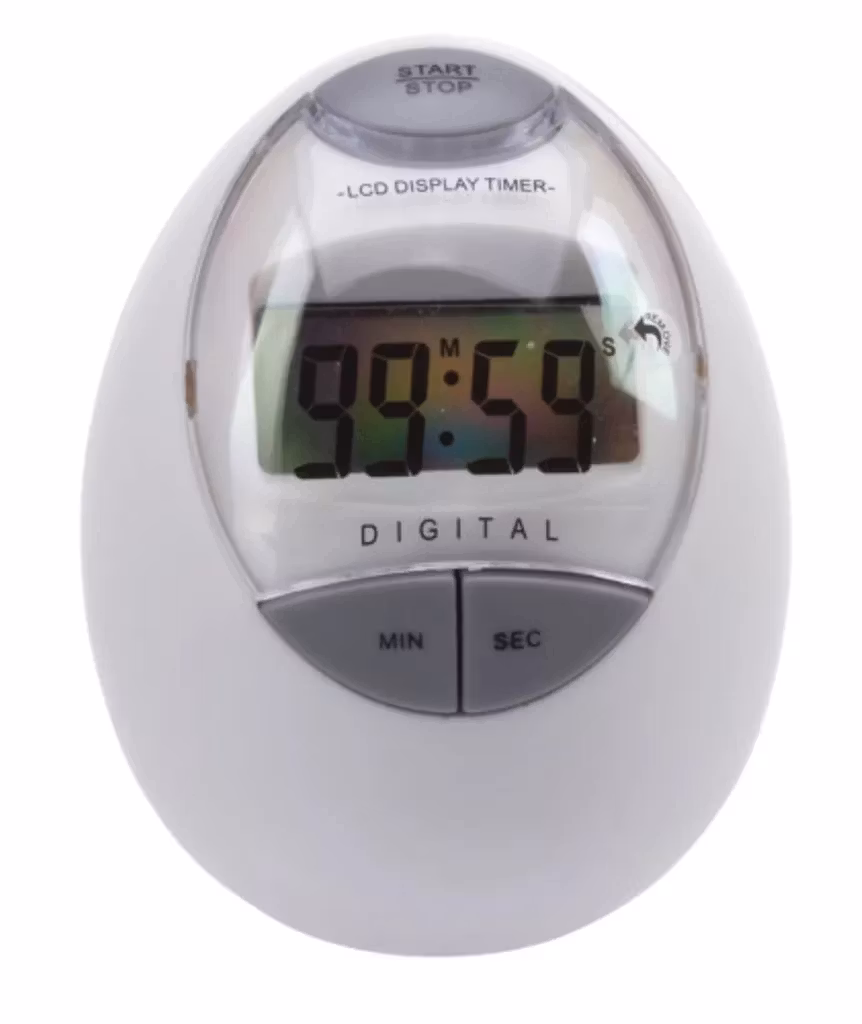 Digital kökstimer mad äggformad design. LCD display och upp till 99 minuter tidtagning.