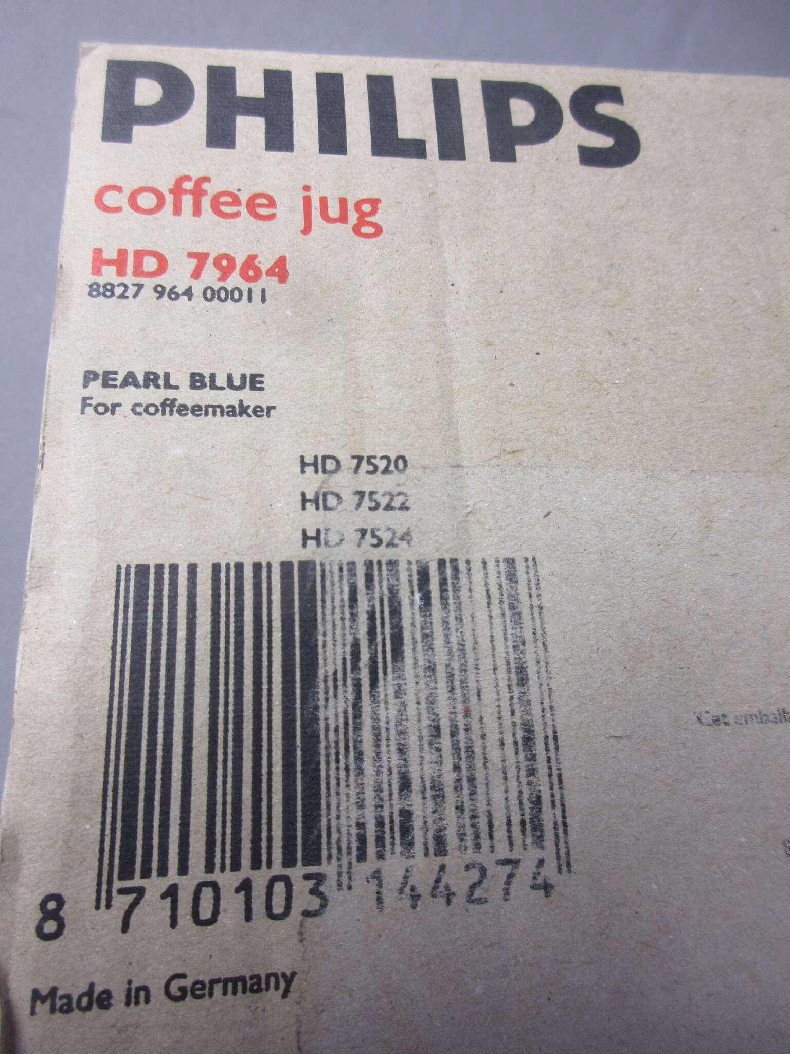 Philips Glaskanna HD7964. (nr 26)Detta är 100 % original glaskanna till PhilipsFärg Pearl Blue handtagOriginalkartong lite skadad