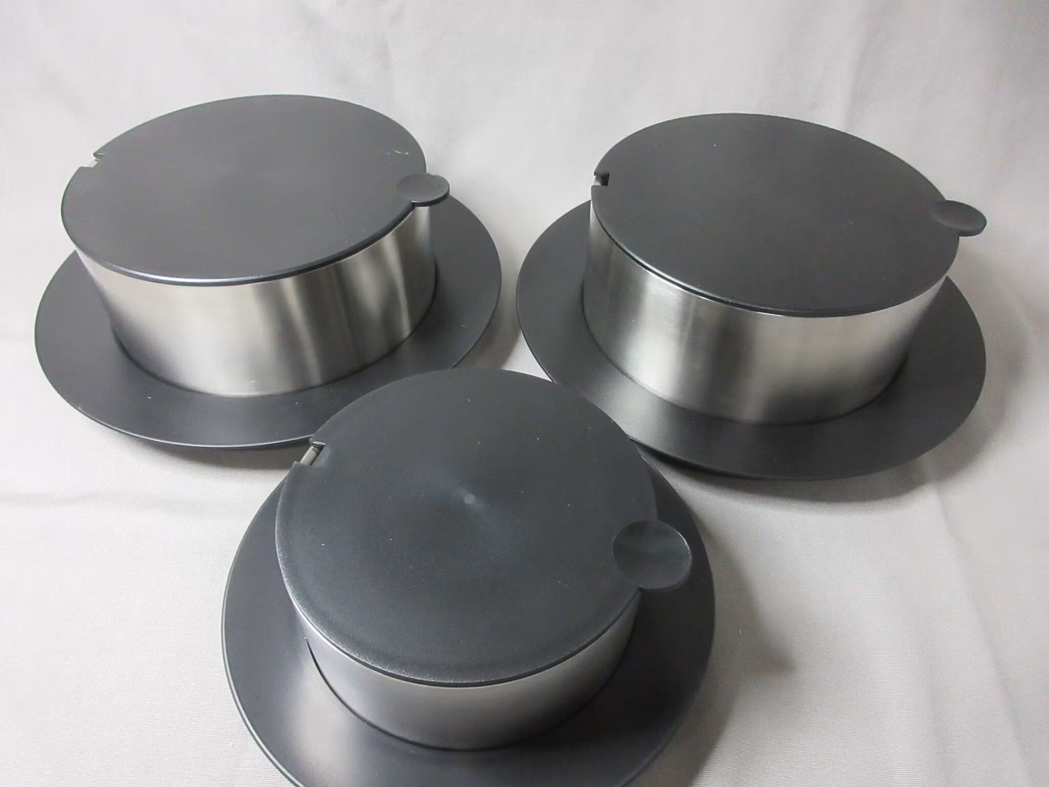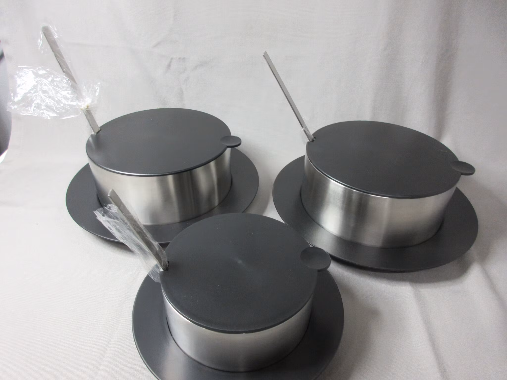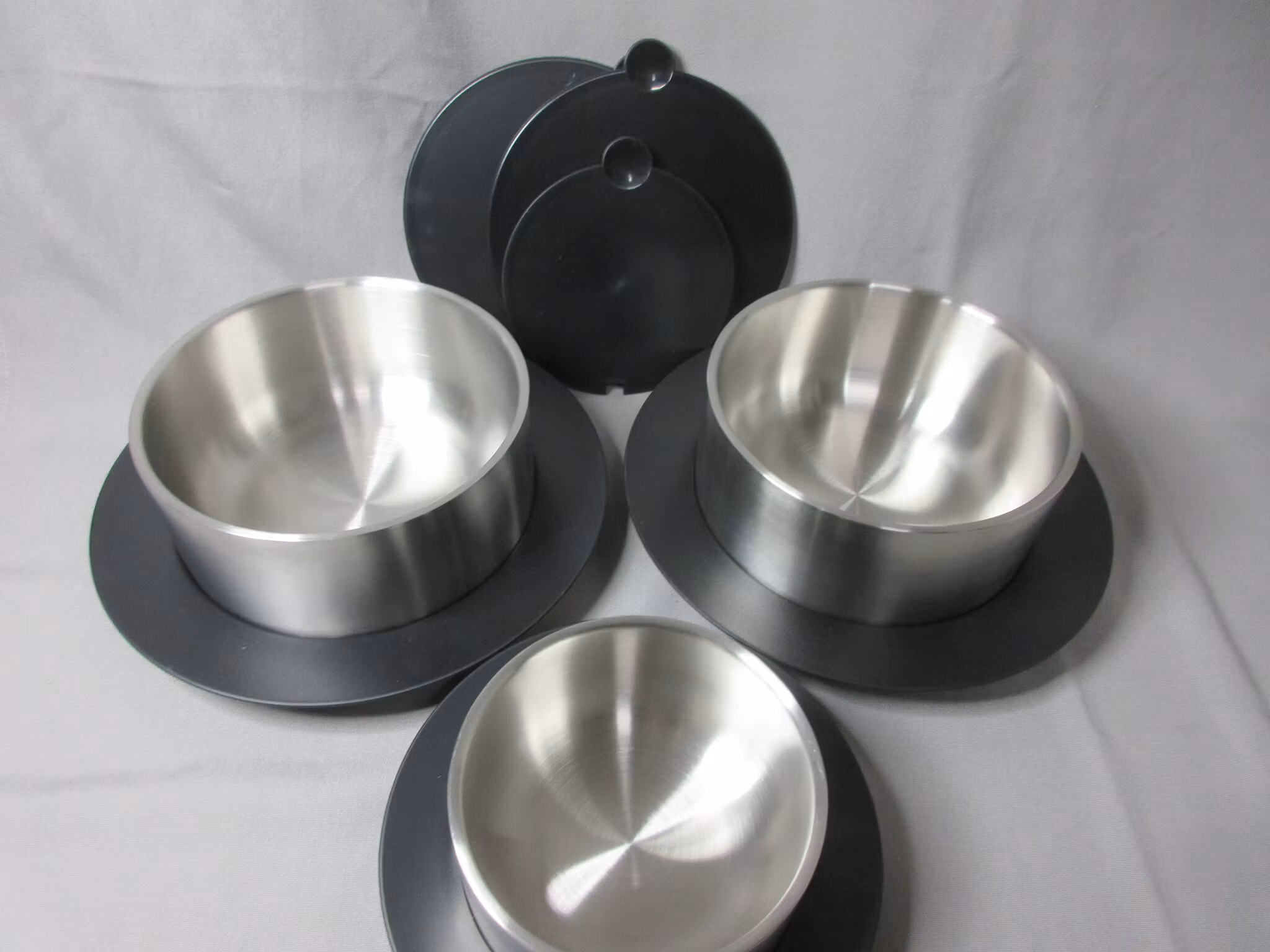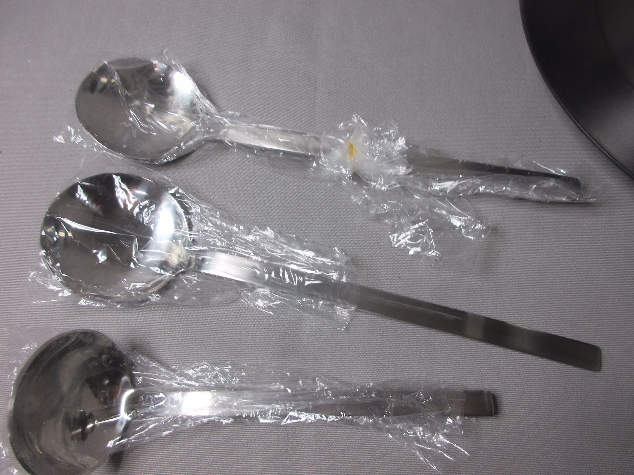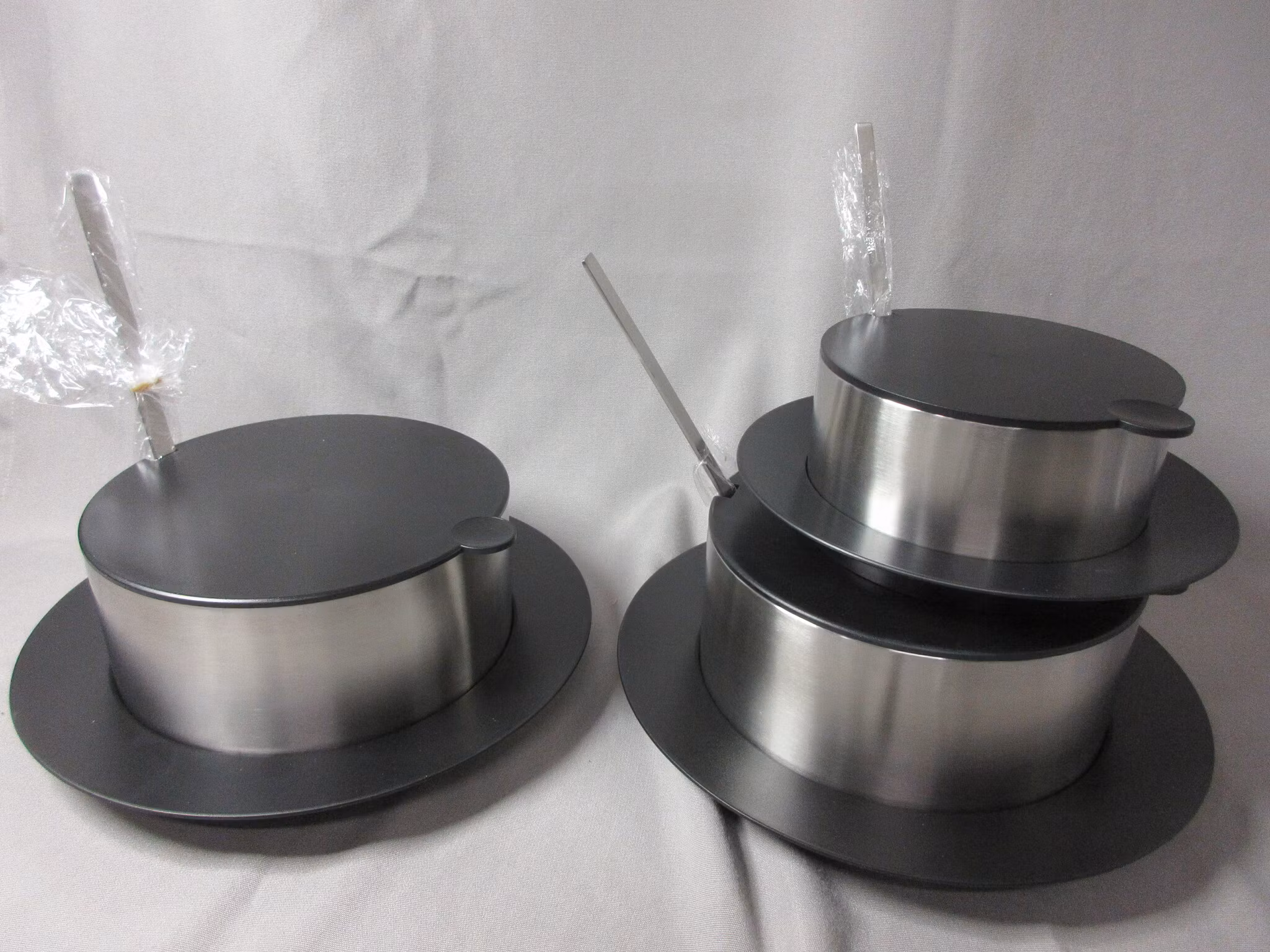 Serveringset Dubbelvägg i den rostfria serveringsskålen för att hålla värmen. Lock, fat och slev medföljer.