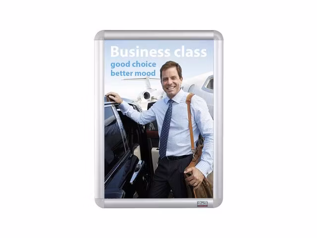 Affischam med klickmekanism som är lämplig för att visa affischer, information, reklam och offentliga upplysningar och är lätt att ’klicka’ öppna så att du snabbt kan ändra innehållet. Aluminiumsramen är idealisk för butiker, utbildningsinstitutioner och kontor och har ett transparent plastöverdrag som skyddar innehållet. Ramen finns med en praktisk väggmonteringssats och passar alla skyltar och affischer.