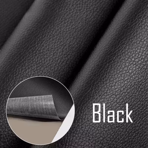 Självhäftande konstläder. Kan klippas till önskad storlek och användas för att laga väskor, möbler, bilsäten och klädesplagg. Mjukt, slitstarkt och med kraftigt lim som håller bra.