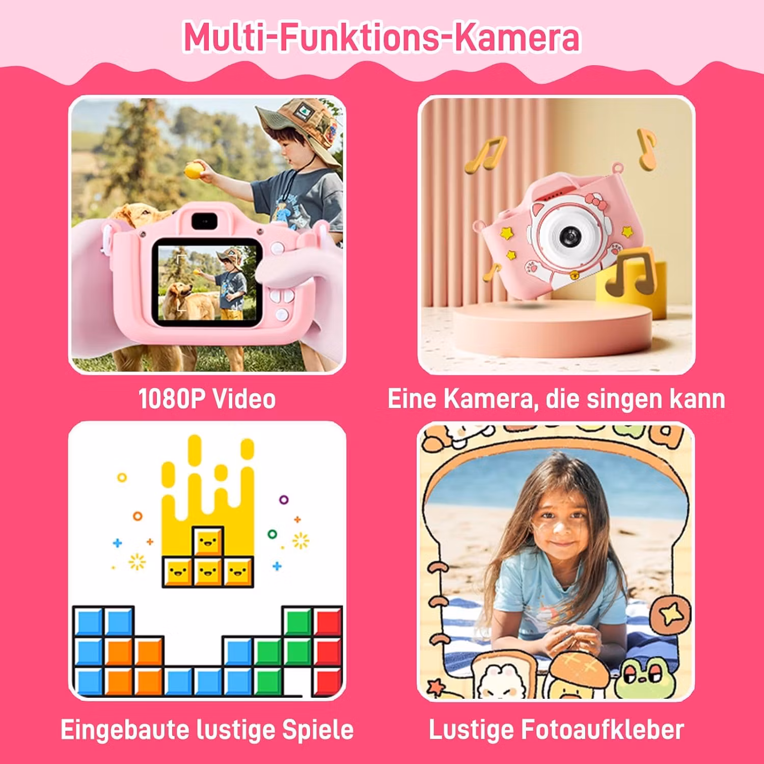 44 alternativ – Kreativa bilder: Denna barnkamera erbjuder 10 olika kompositionslägen för att stimulera ditt barns kreativitet och fantasi. 6 färgfilter och 28 ramalternativ gör varje foto till en unik skapelse. Dessutom stöder digitalkameran för barn även fotografering, videoinspelning, selfietimer och timelapse-inspelning, så att barn enkelt kan prova olika fotograferingstekniker med barnkameran.