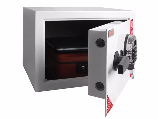 Elektroniskt säkerhetsskåp med kombinationslås.