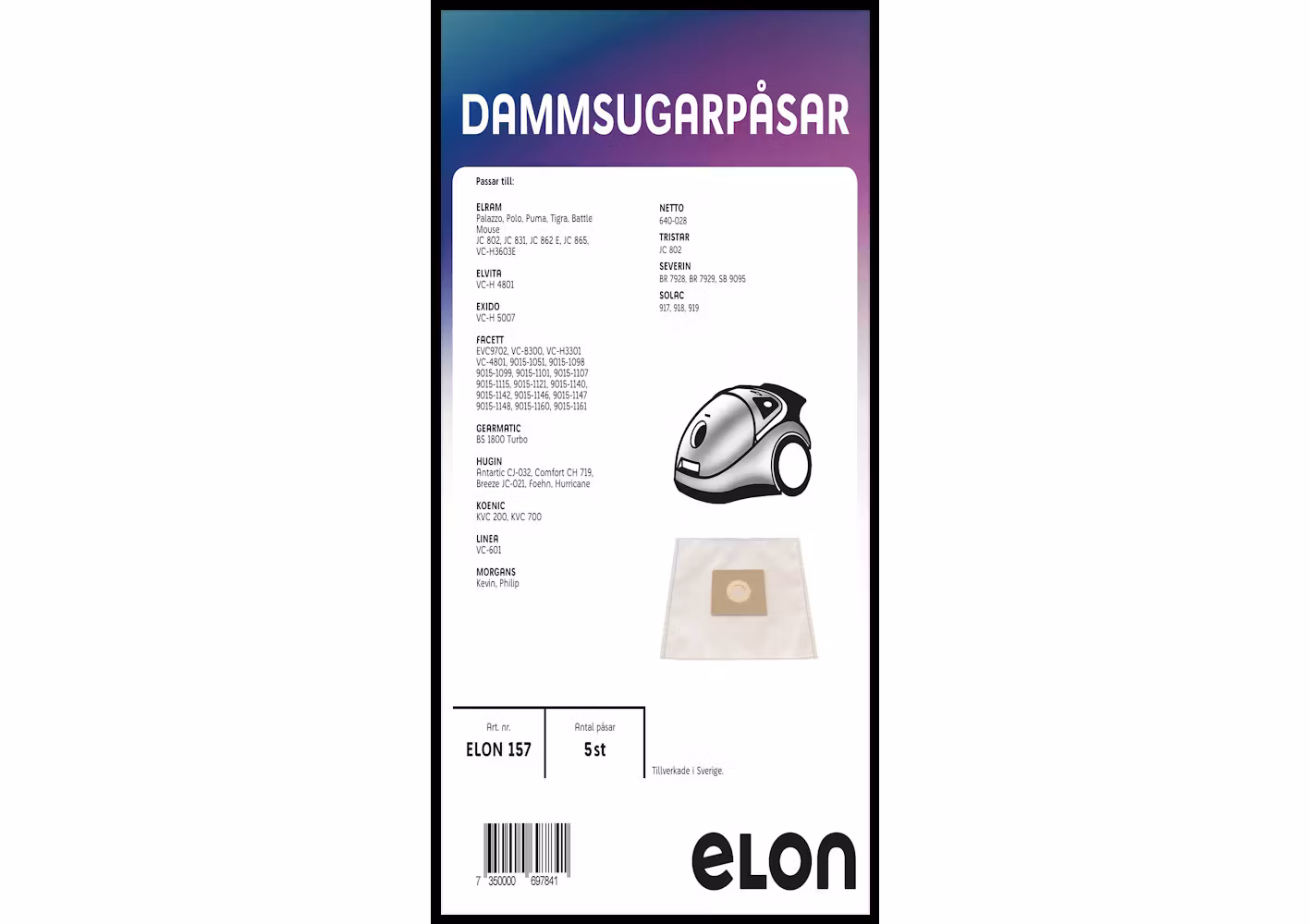 Dammsugarpåsar ELON157 Elvita VC-H 4801. 5 st.