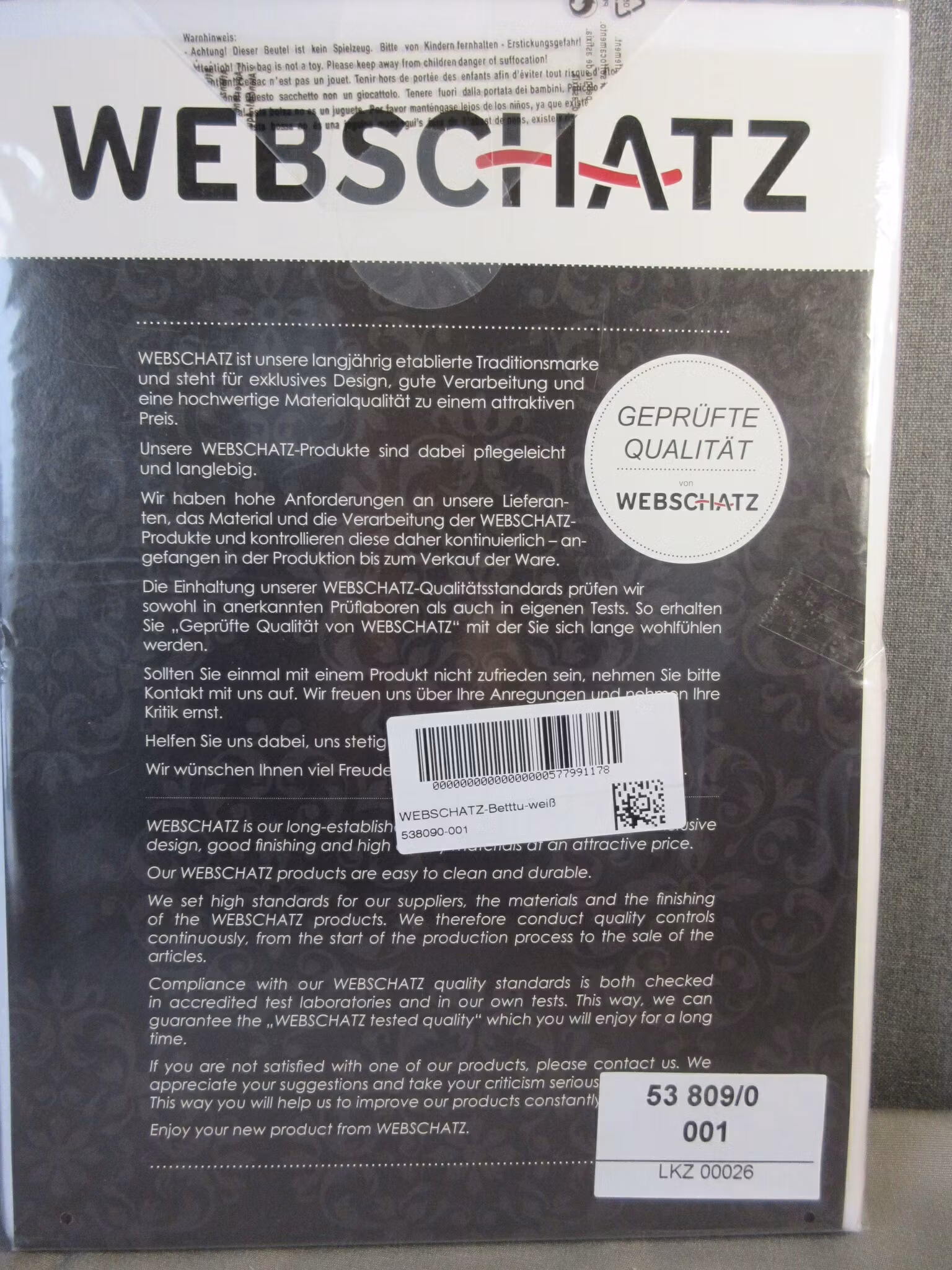 Webschatz Underlakan Vit 150x260 cmBomull är ett mjukt naturmaterial som andas, suger upp fukt och känns skönt mot din hud.Material 100% BomullTvätt 60 graderMå