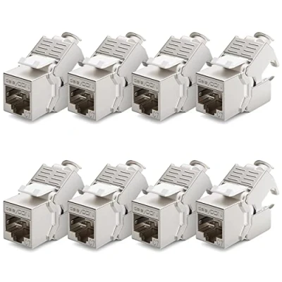 DeleyCON 8x CAT 7 Keystone Jack Modul Idealisk för CAT7 CAT6 CAT6a Installation Kabelkontakt Patch Kabel Nätverkskabel STP Skärmning RJ45 Uttag 1000 MHz 10 Gbit