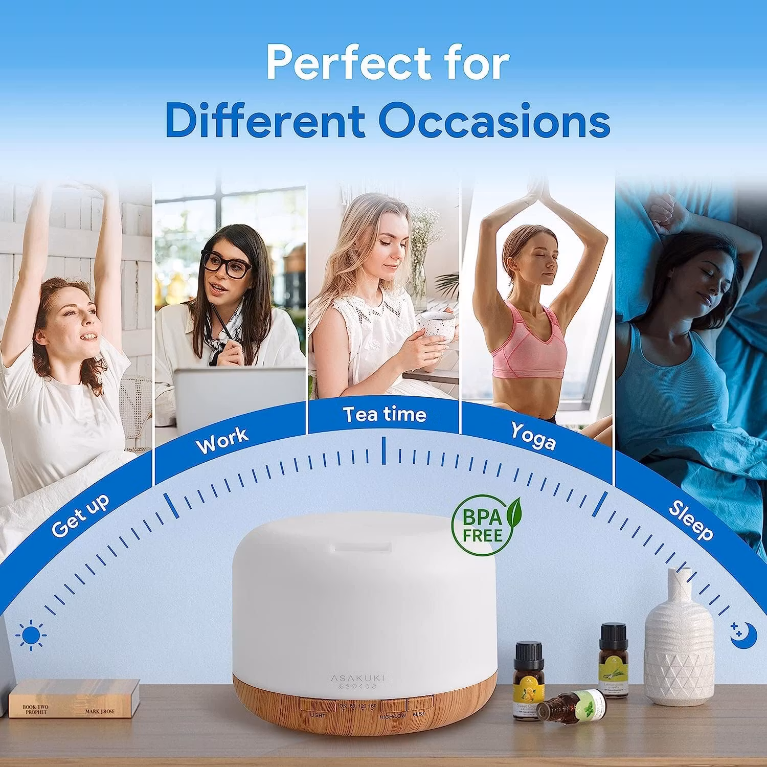 Mycket förbättrad luftkvalitet: Förutom att den används för aromaterapi, fungerar denna eteriska oljediffusor också som en luftfuktare. Använd den i ditt hem för att förbättra kvaliteten på luften och atmosfären, dölja lukten från husdjur eller rökning och skydda familjen från för torr luft, mikroorganismer, allergener, damm och mycket mer!
