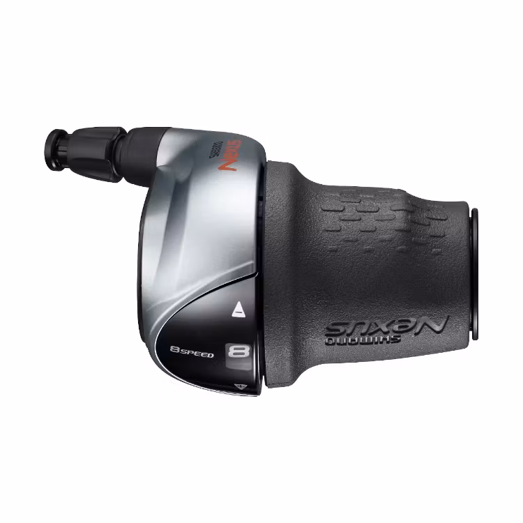 Växelreglage med vajer + hölje som passar Shimano´s 8-växlade växelnav. Smidig växling genom en vridrörelse istället för för användning av fingerstyrkan som krävs vid “Trigger”-reglagen. Smidig skärm som visar vilken växel ni är på dessutom!