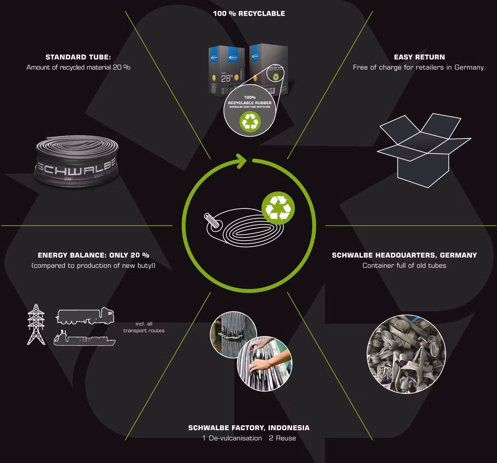 Miljövänligt producerad cykelslang från tyska Schwalbe