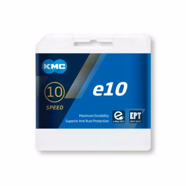 - 1 x KMC kedja 10-växlad e10 EPT 136 länkar för e-cykel | silver