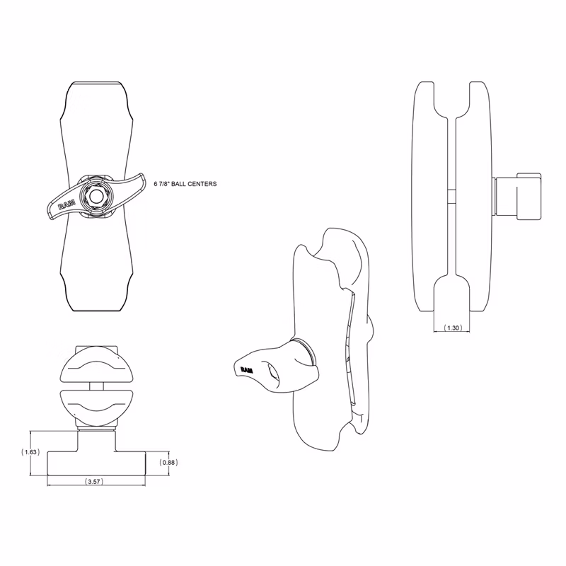 Standard RAM® double socket arm provides an ideal overall length of 8.44" and a socket-to-socket length of 6.88"