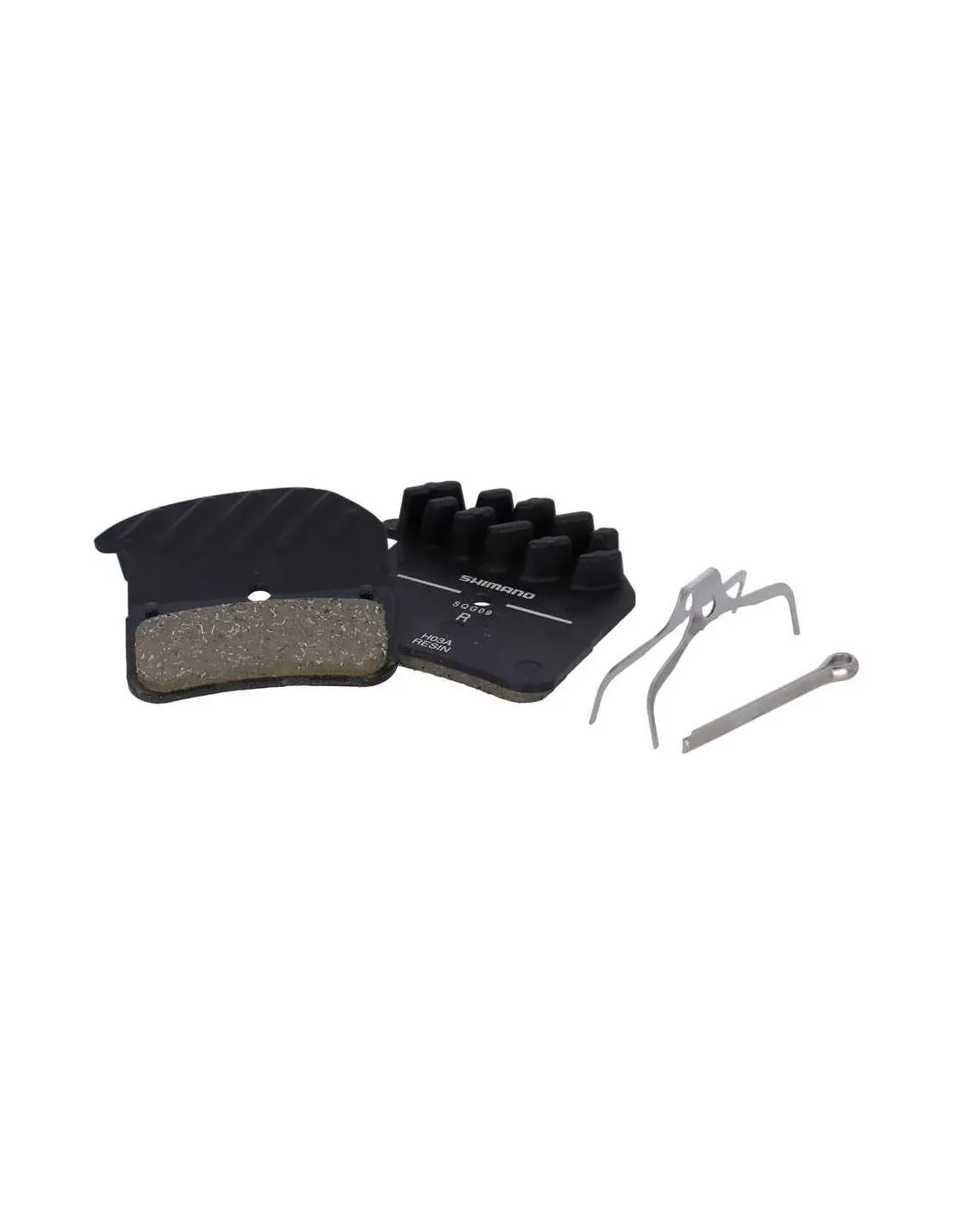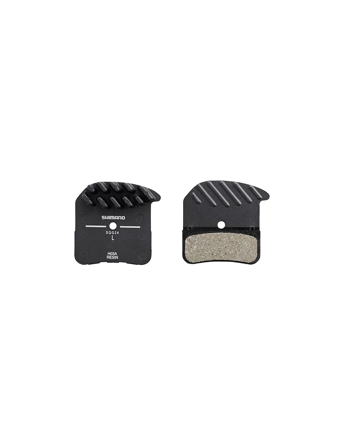 Shimano H03A Resin skivbromsbelägg har hög slitstyrka och effekt vid bromsning. Bromsbelägg med kylflänser för snabbare kylning.